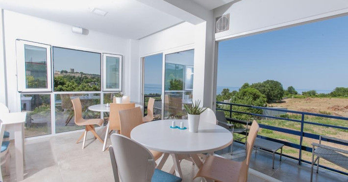 Descriere: Situat pe un deal, hotelul ofera privelisti de neuitat atat spre Cetatea Medievala Platamonas cat si spre marea Egee si zonele din jur. In Cetatea Medievala au loc adesea evenimente culturale importante. Localizare: Hotelul 12 Olympian Gods se afla imediat langa autostrada ce leaga orasul Salonic de capitala Greciei, Atena, la periferia statiunii Platamonas si la aproximativ 800 de metri de plaja. Facilitati hotel: Salon de mic dejun, bar, internet WiFi, lift, terasa, loc de joaca, masa de ping-pong, parcare, internet Wi-Fi. Dotari camere: Hotelul ofera cazare in 18 camere renovate, ce pot caza 50 de oaspeti, dupa cum urmeaza: 12 camere duble de lux si 5 camere familiale (apartamente junior). Acestea sunt dotate cu: at matrimonial sau 2 paturi twin, aer conditionat, TV LCD, internet Wi-Fi, seif, minibar, uscator de par, baie cu dus si balcon sau terasa amenajate cu masuta si scaune. La cerere se ofera patut de bebelus. Camerele au vedere spre mare sau spre munte. Masa: Mic dejun bufet, cina meniu fix. Pagina web: www.12olympiangods.gr