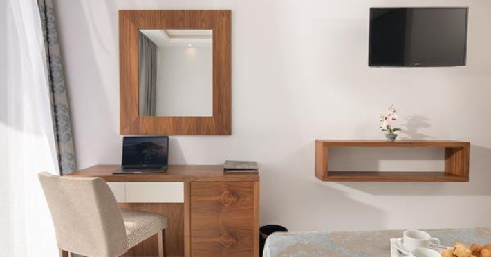 Camerele luminoase si confortabile au balcon / terasa, baie cu articole de toalet gratuite si uscator de par. Acestea includ, de asemenea, seif si internet Wi-Fi gratuit. Receptia este deschisa nonstop. Restaurantul Aigaio serveste zilnic un mic dejun tip bufet variat.