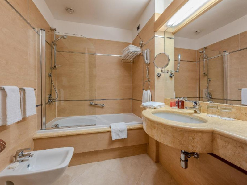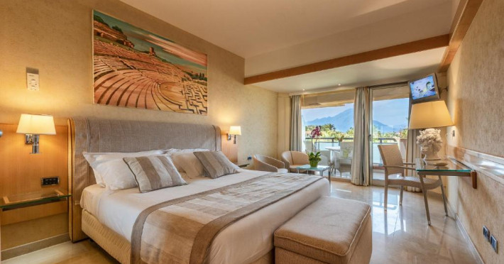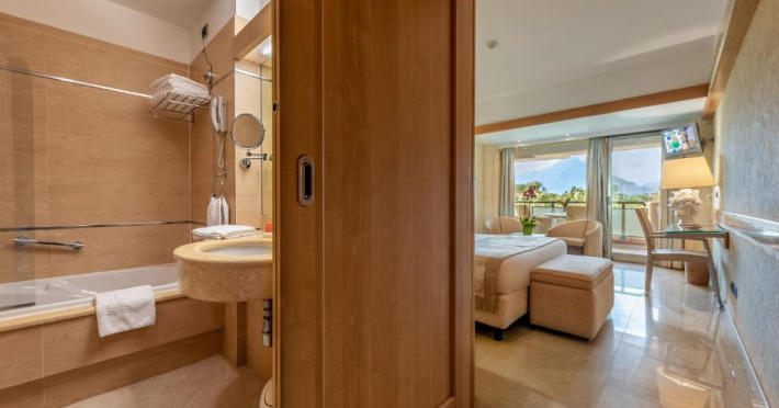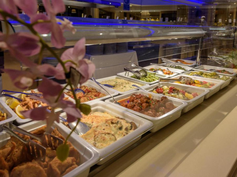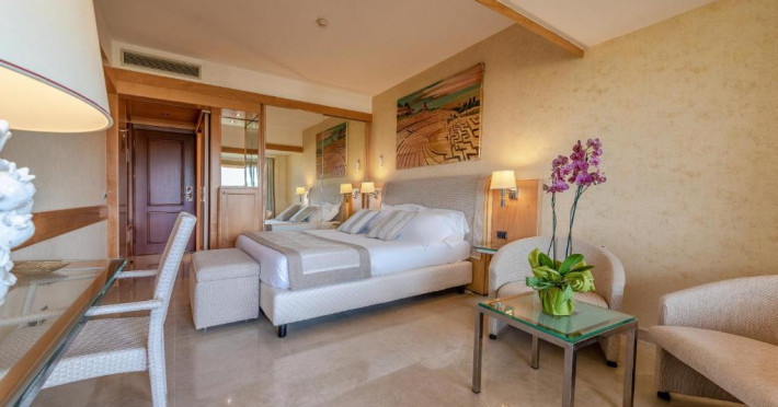 Un mic dejun tip bufet generos este servit zilnic, iar restaurantul este specializat in preparate siciliene și internaționale. Sunt disponibile și un bar la piscină și un lounge bar cu muzică live seara.