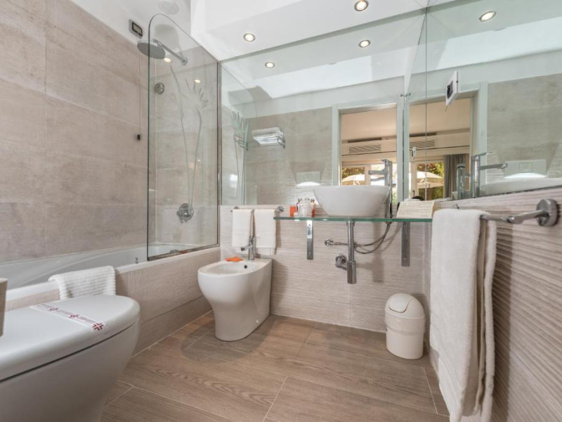 Oaspeții se pot relaxa in saună și baie turcească sau se pot relaxa in a doua piscină cu jeturi de hidromasaj amplasate pe terasa grădinii. Activitățile sportive de aici includ tenis, minigolf și volei, precum și SUP paddle pe plajă și un teren de fotbal pe iarbă pentru jucători de 5 persoane.