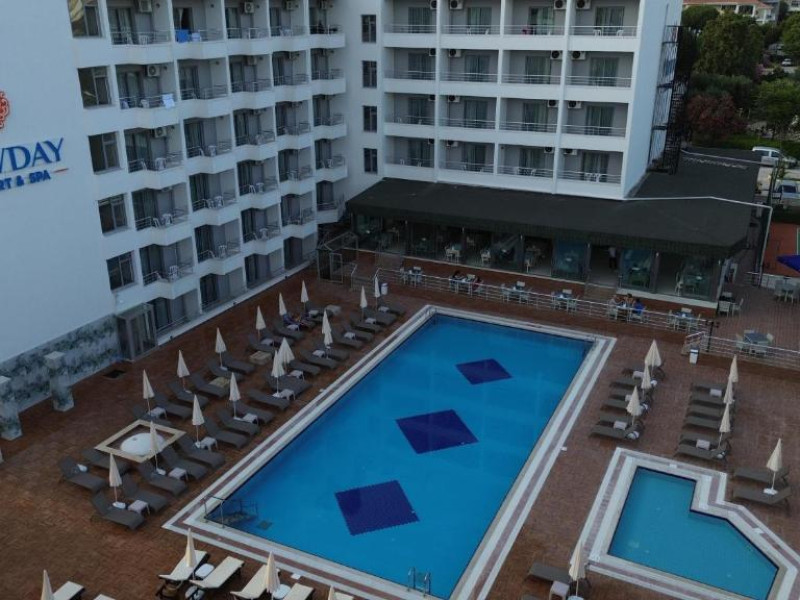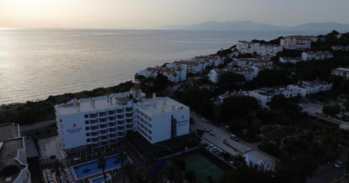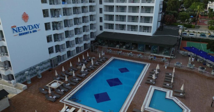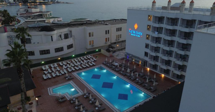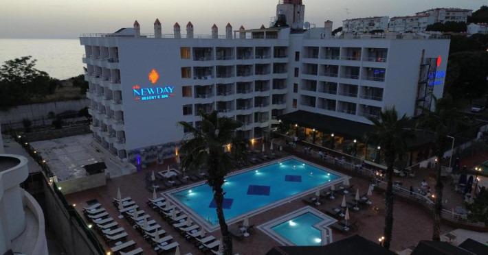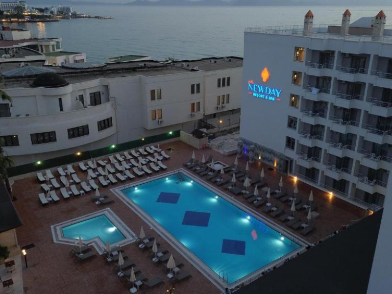 Ada Newday Resort Hotel se află in Kușadası, la 2 minute de mers pe jos de Plaja Kadinlar, și pune la dispoziție o zonă in aer liber sezonieră, o grădină, o terasă și parcare privată gratuită. Proprietatea pune la dispoziție un restaurant, precum și un bar, o saună și un hamam. Proprietatea oferă o recepție deschisă non-stop, servicii de transport de la/la aeroport, room-service și WiFi gratuit in proprietate.