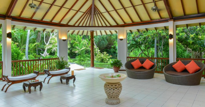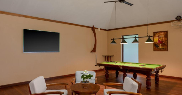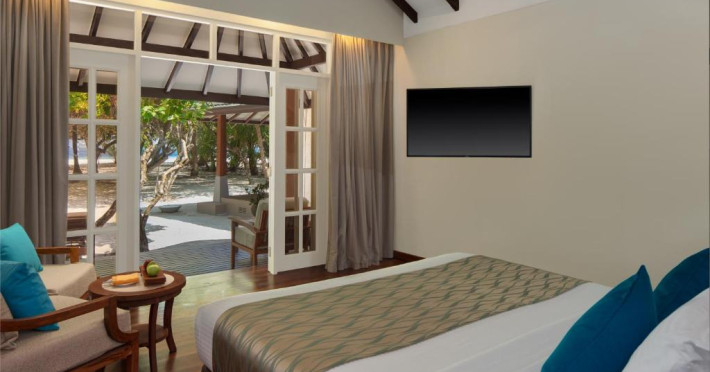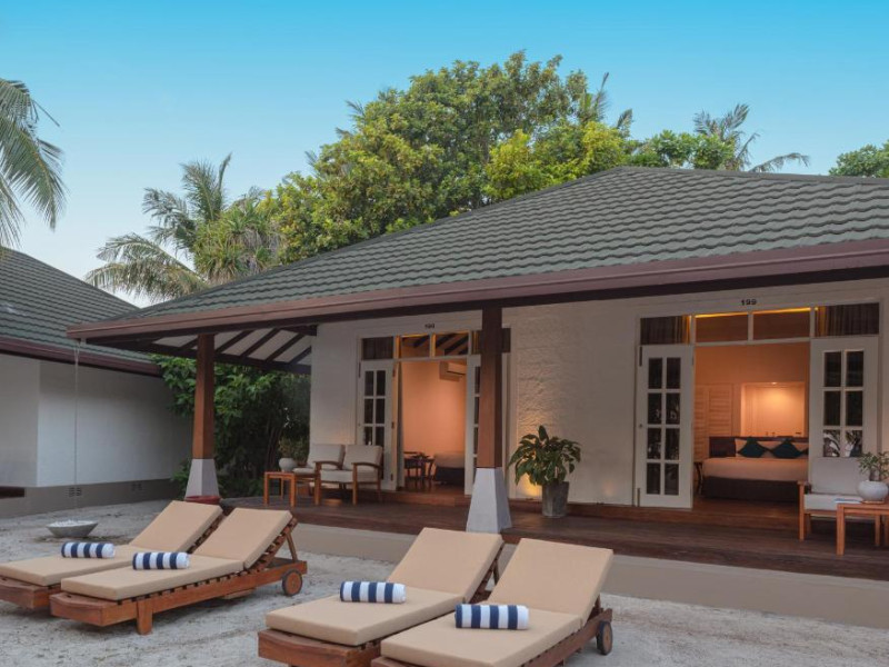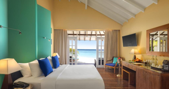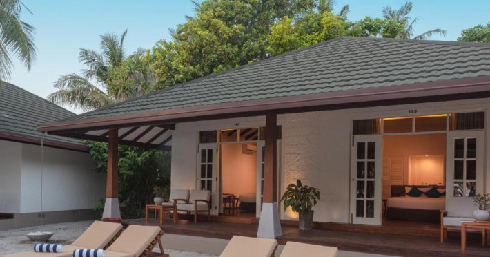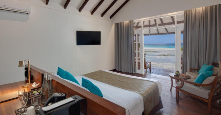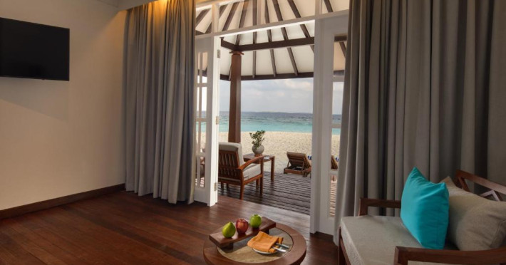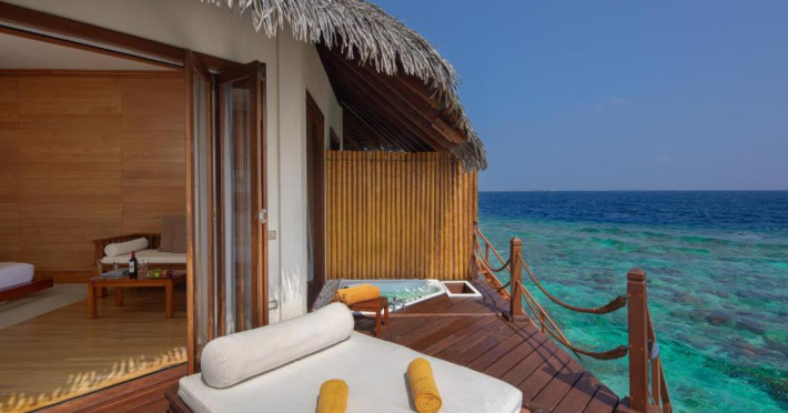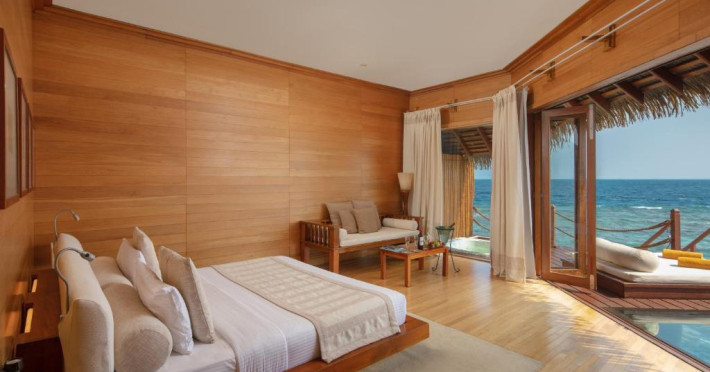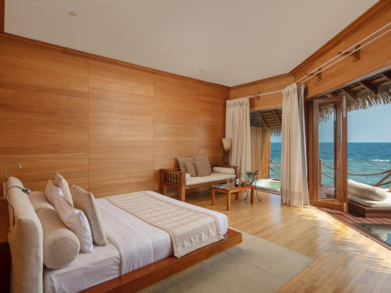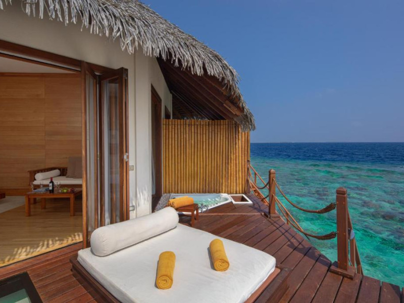 Hotelul dispune de vile pe piloni deasupra apei și bungalouri pe plajă, fiecare cu vedere spectaculoasă la ocean. Atmosfera este relaxantă și intimă, perfectă pentru cupluri și familii care caută liniște.