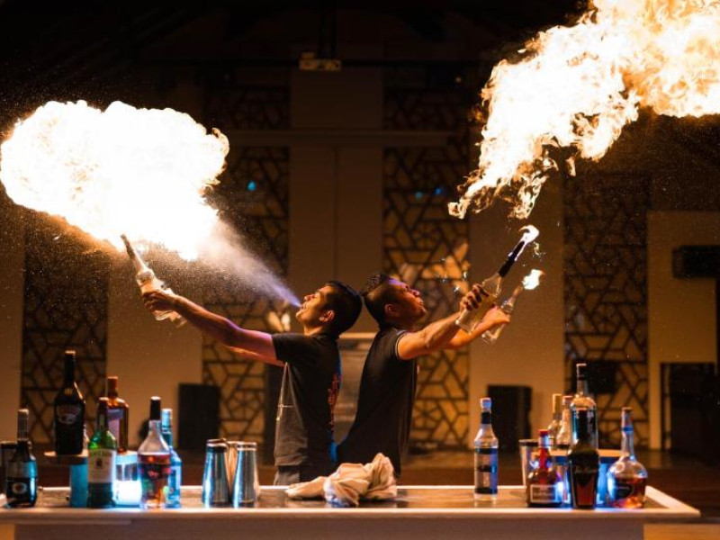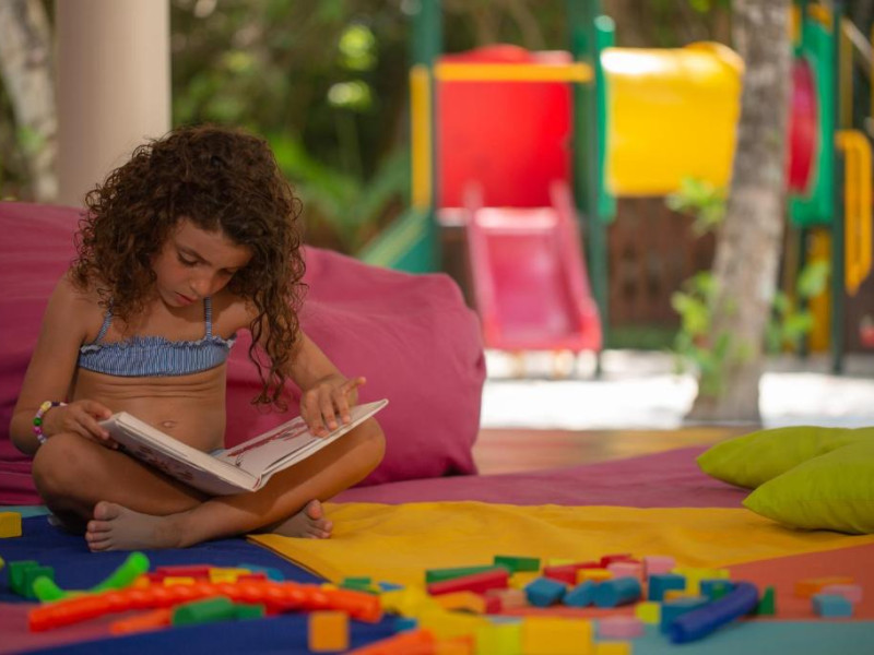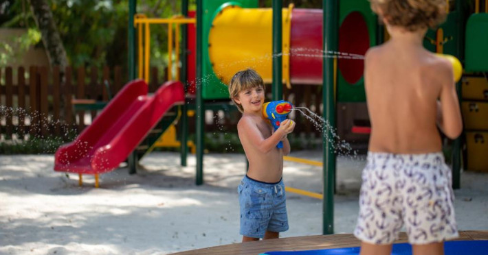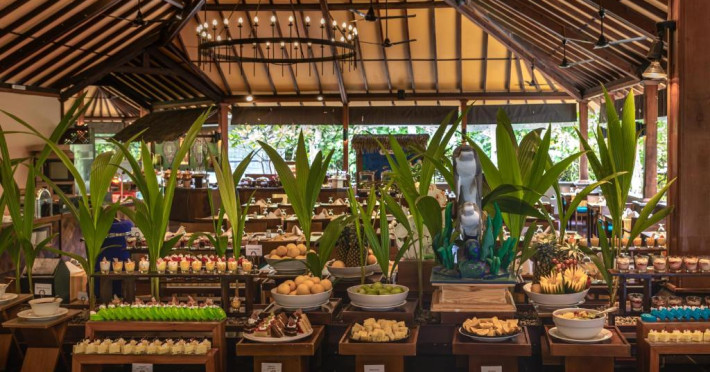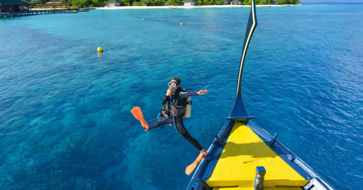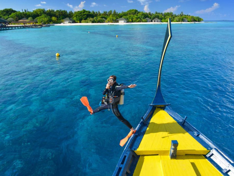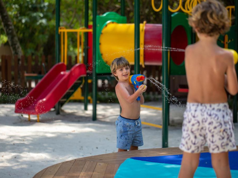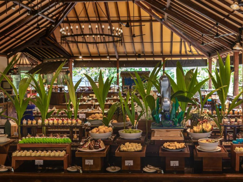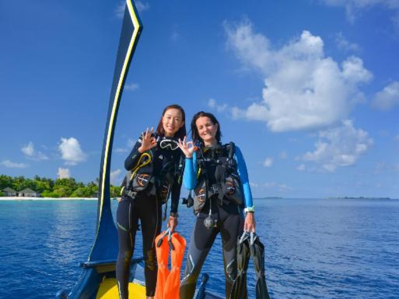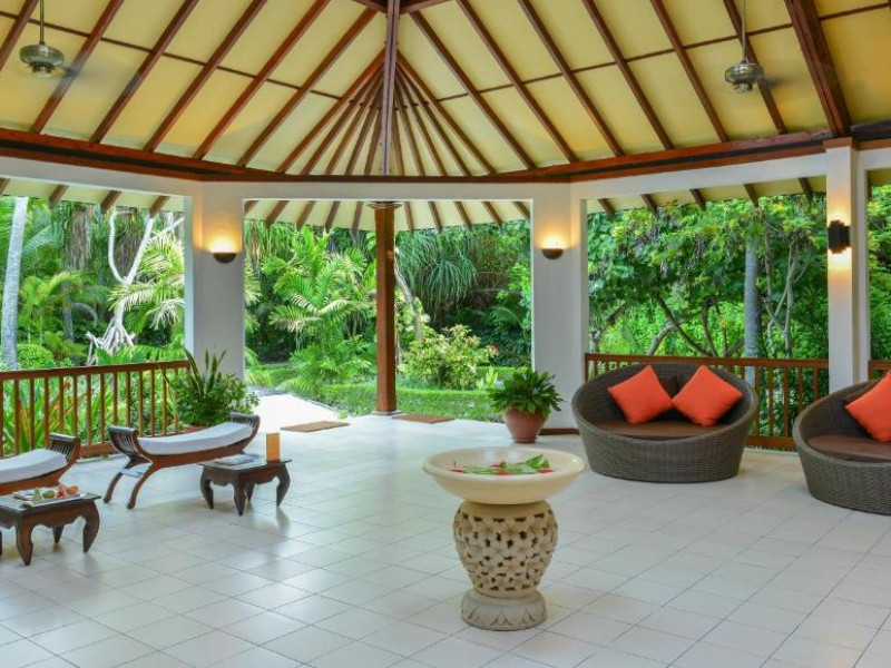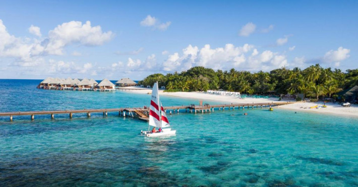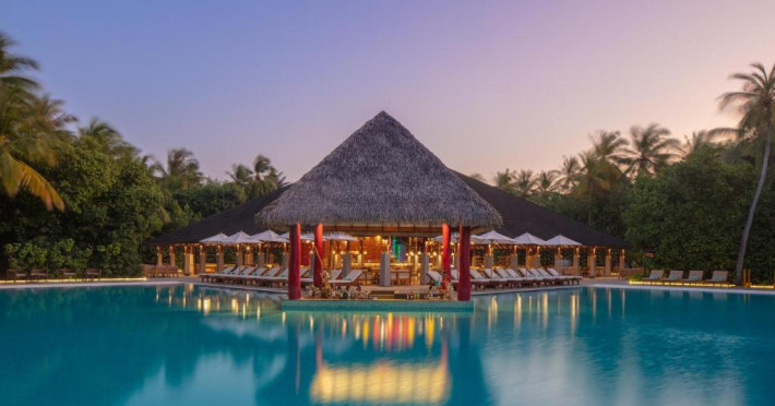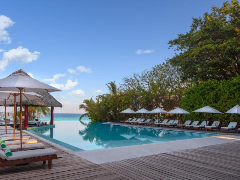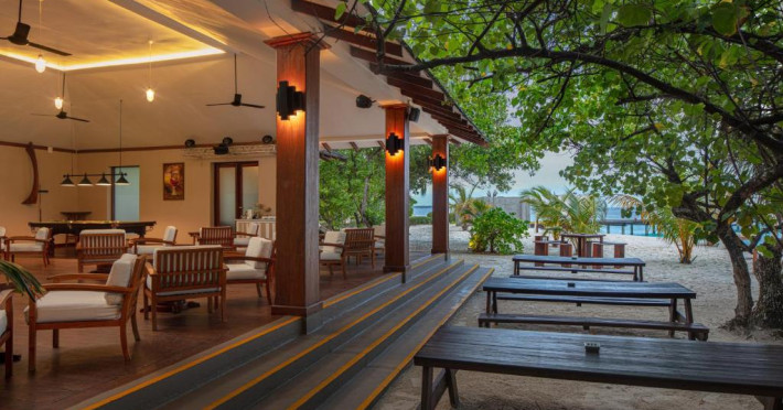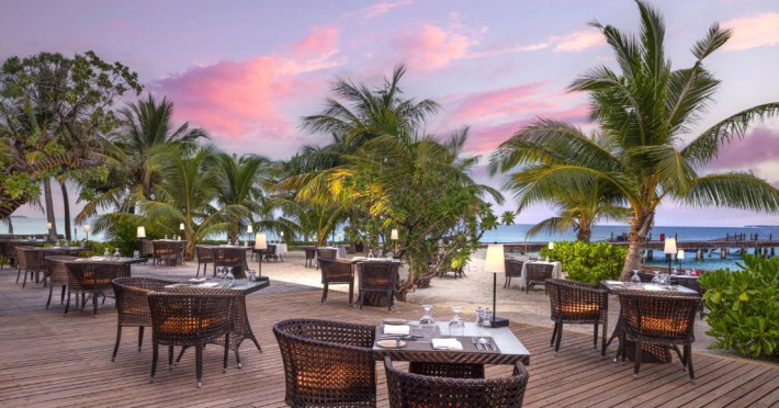 Facilitățile includ restaurant cu bucătărie internațională, bar pe plajă, centru de sporturi nautice și spa. Oaspeții pot practica snorkeling și diving direct de pe insulă, explorand recifele de corali din apropiere.