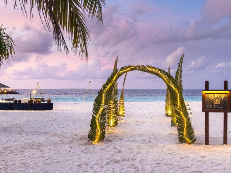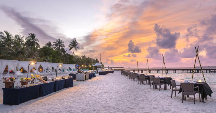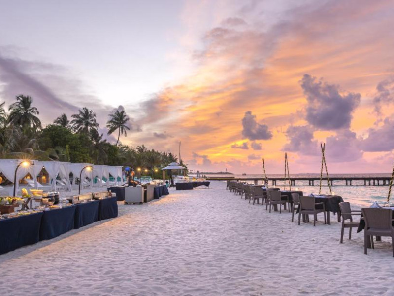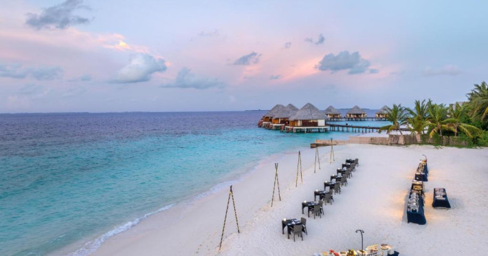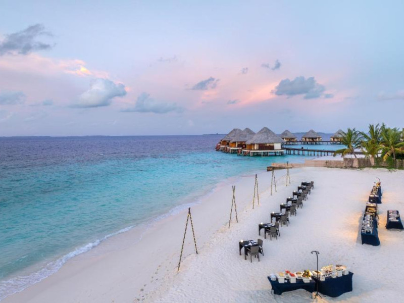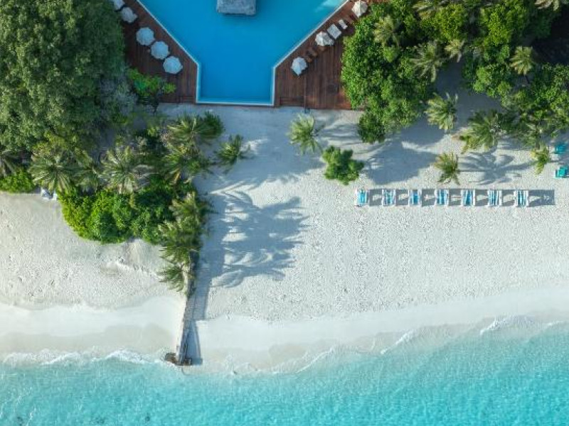 Hotelul oferă acces direct la plaja cu nisip alb fin, inconjurată de ape cristaline turcoaz. Transferul se face cu hidroavion de la Aeroportul Malé, oferind vederi aeriene spectaculoase asupra atolilor.