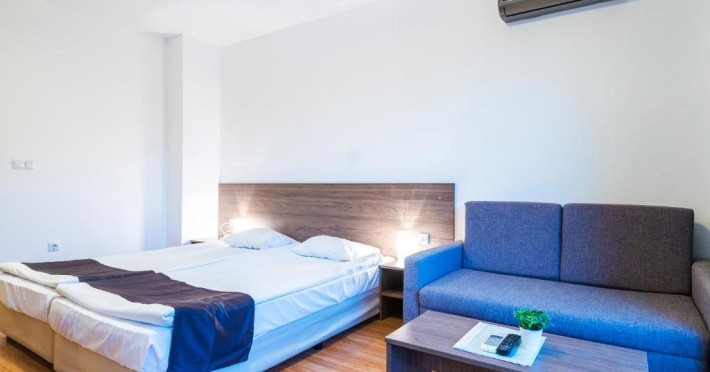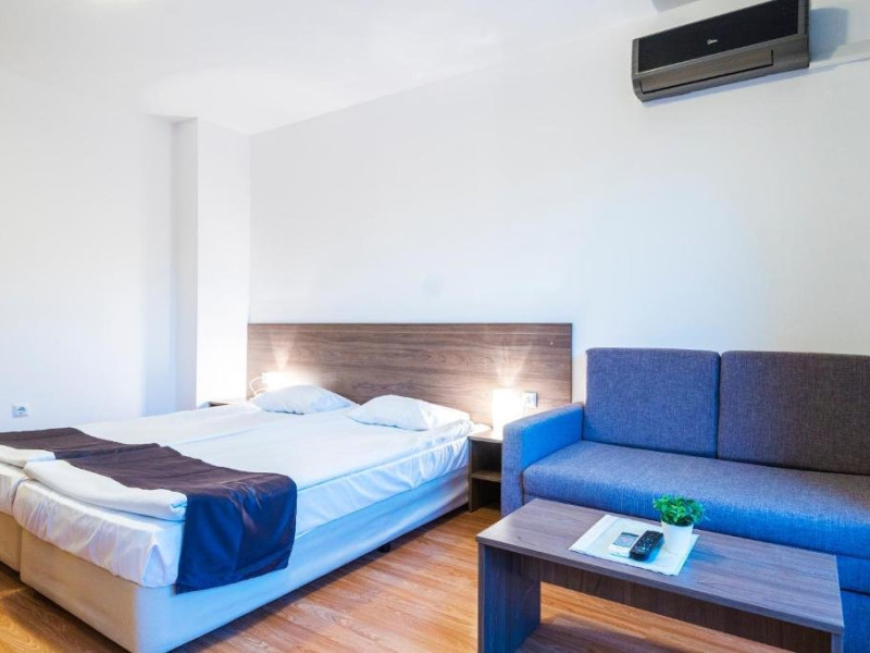 Facilitati camere: aer conditionat minibar LCD-TV, Tv prin cablu telefon baie cu dus uscator de par