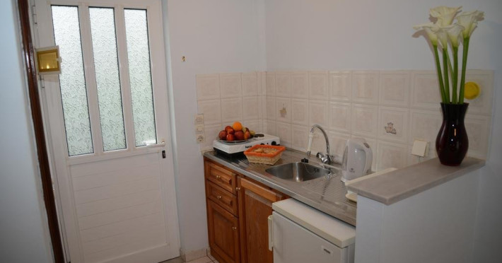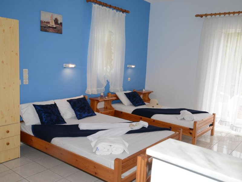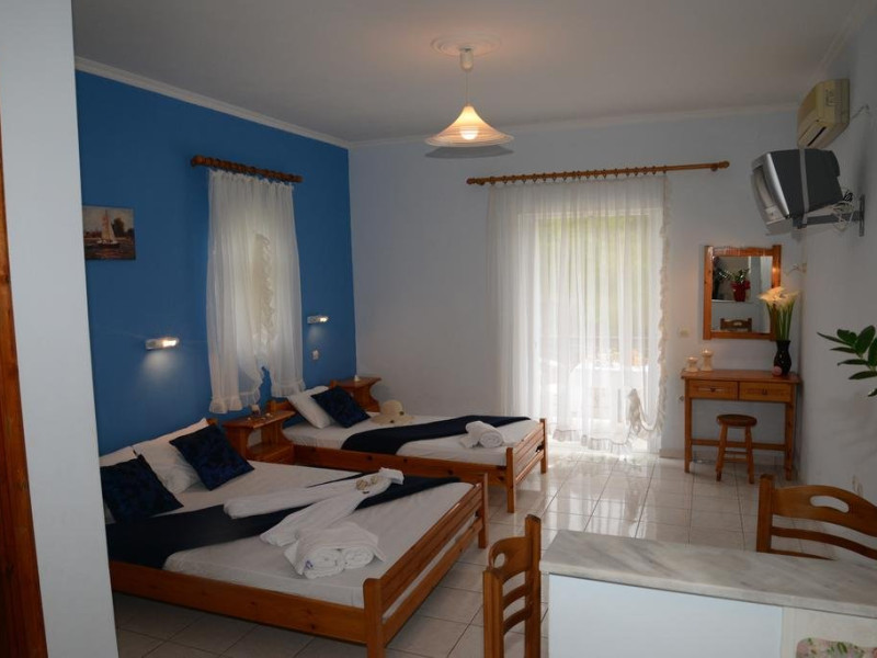 Descriere Aelia Studios: proprietate moderna, frumos intretinuta, alcatuita din 7 studiouri, inconjurat de vegetatie luxurianta. Localizare Aelia Studios: studiourile Aelia sunt localizate la 5 minute plimbare de plaja Laganas, la 3 km de port, la 10 minute plimbare de centrul Laganas, unde se afla restaurante, magazine si baruri. Dotari camera: Aelia Studios dispune de 7 studiouri amenajate modern, dotate cu: baie privata cu dus, wi fi gratuit, aer conditionat, TV, balcon, chicineta utilata cuplita, frigider si ceainic electric. Facilitate Aelia Studios: piscine exterioara, terasa pentru plaja, Wifi gratuit, parcare gratuita, inchiriere biciclete si masini, gradina frumos intretinuta, depozitare bagaje. Se accepta animale de companie. Taxa de statiune obligatorie - se plateste la receptie.