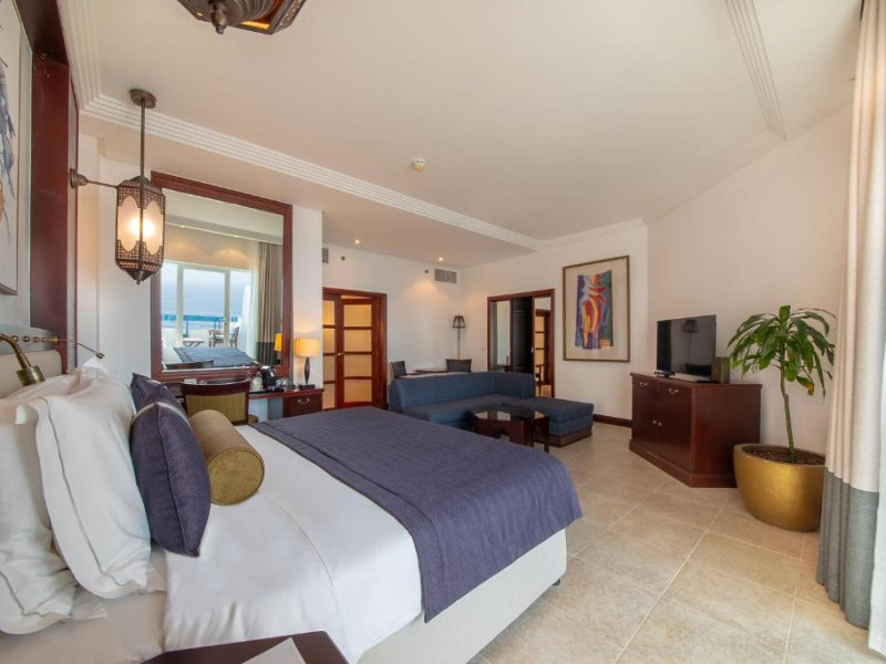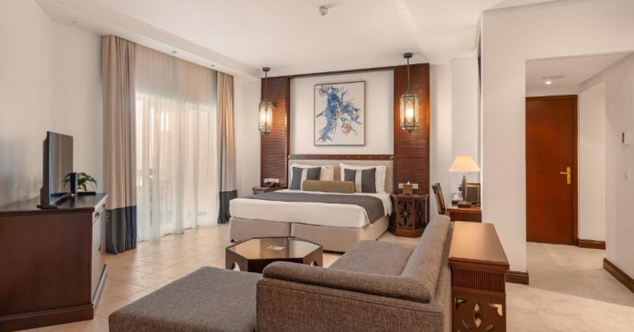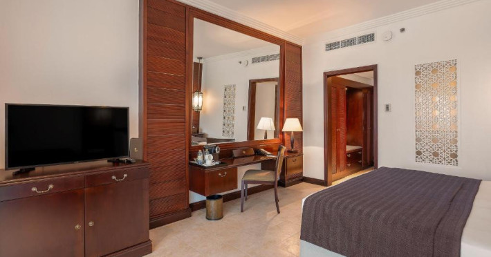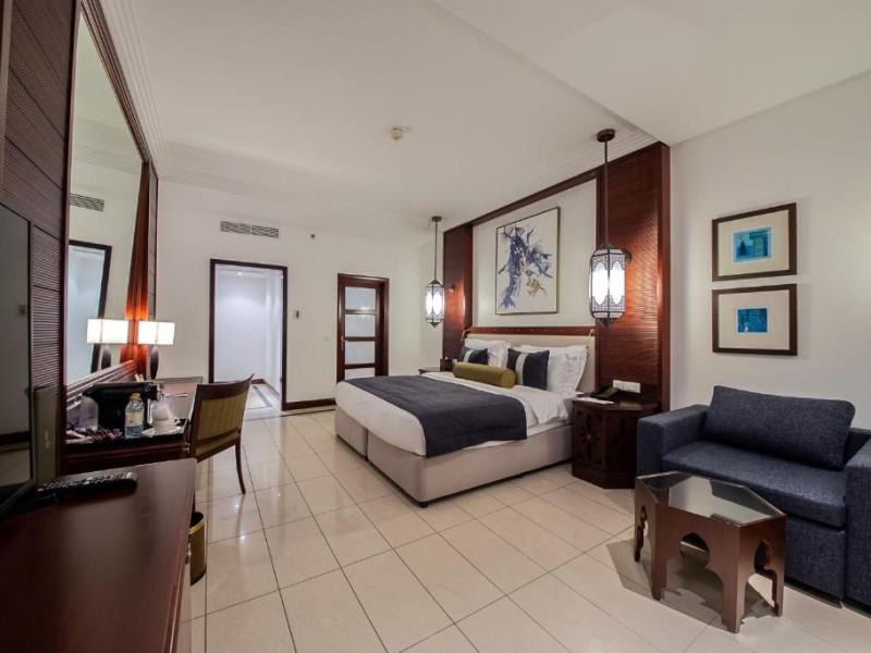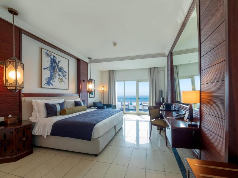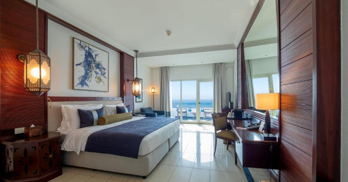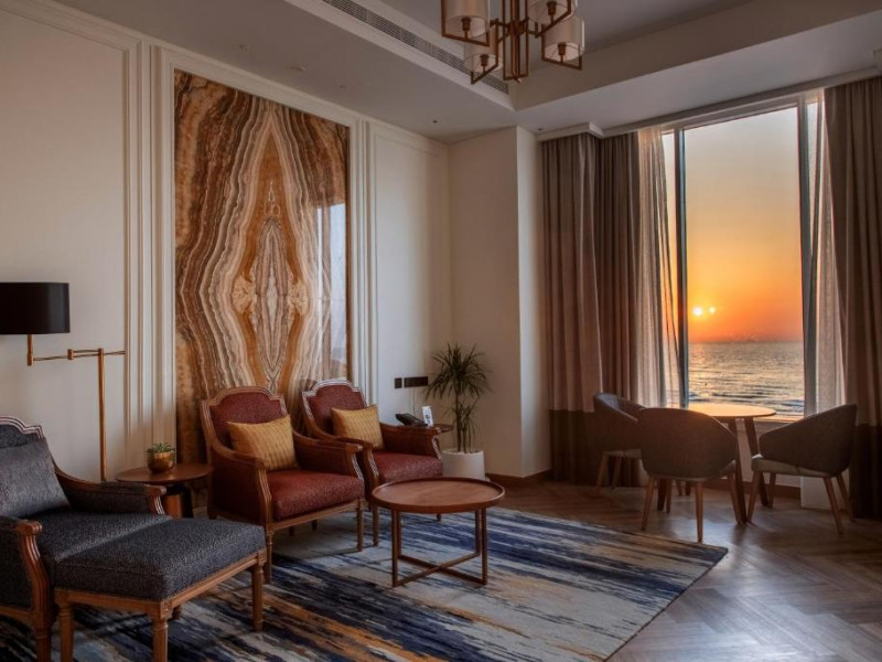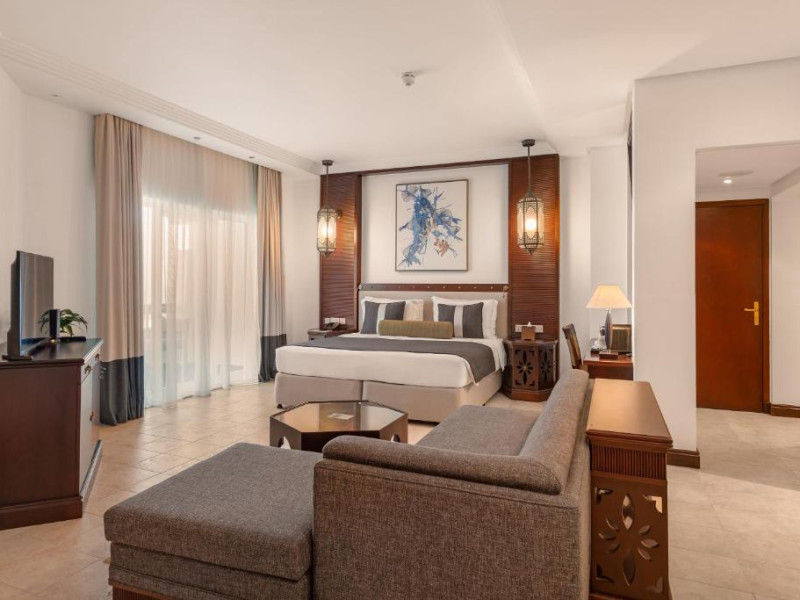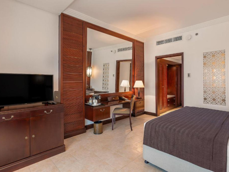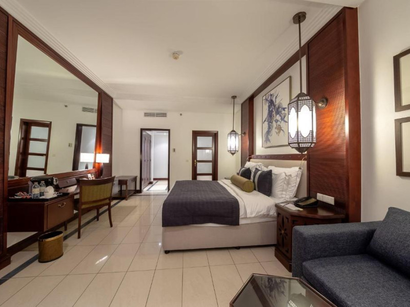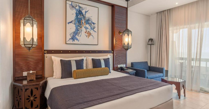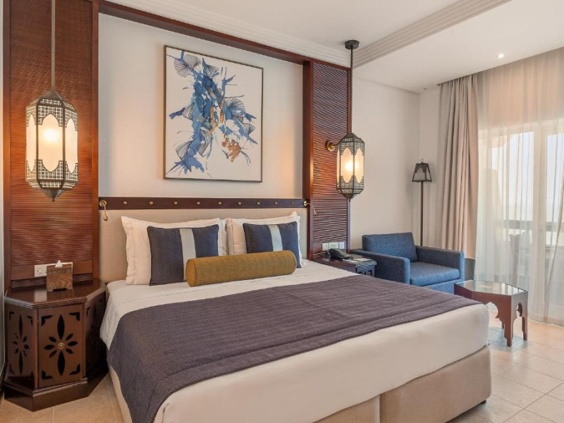 Camerele au scheme de culori luminoase și mobilier din lemn elegant, in stil oriental. Camerele și suitele elegante duc spre un balcon sau o terasă privată, mobilată. Vederea panoramică are vedere la Golful Persic și la grădina luxuriantă amenajată.