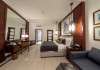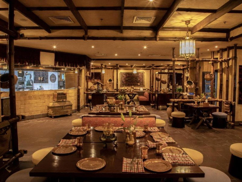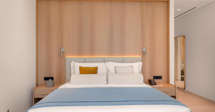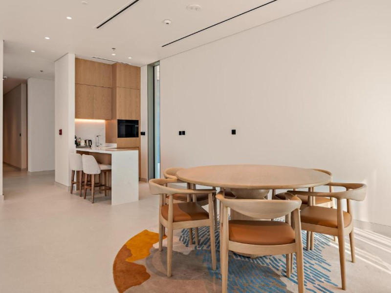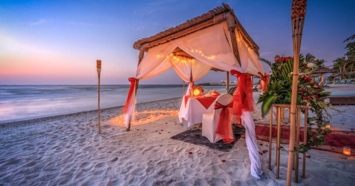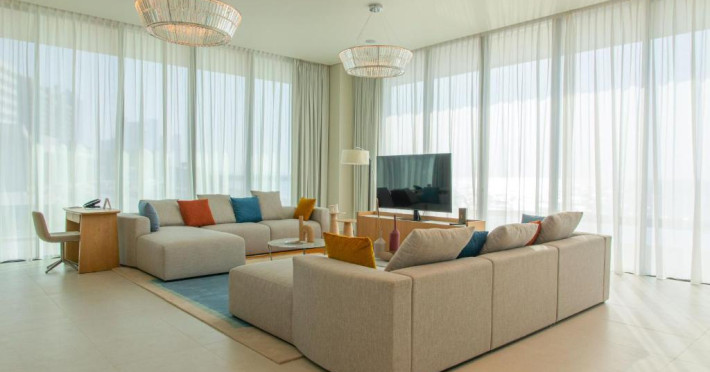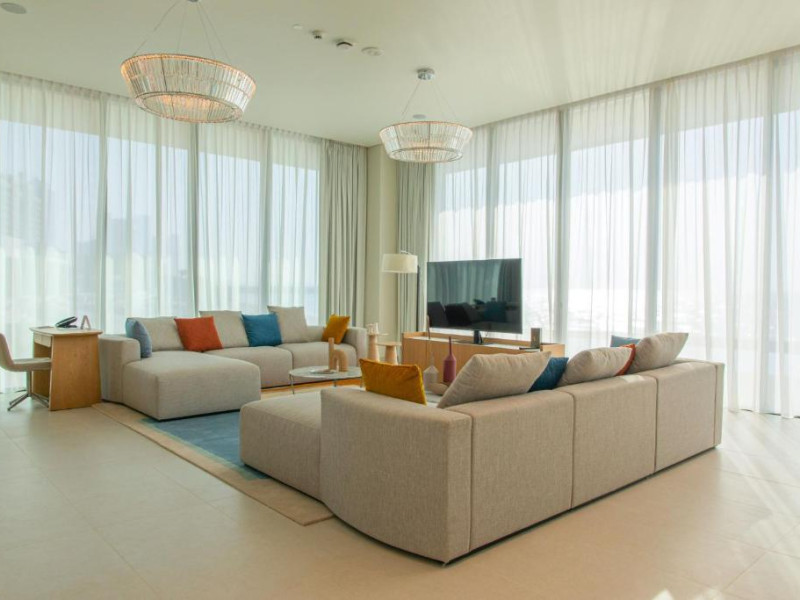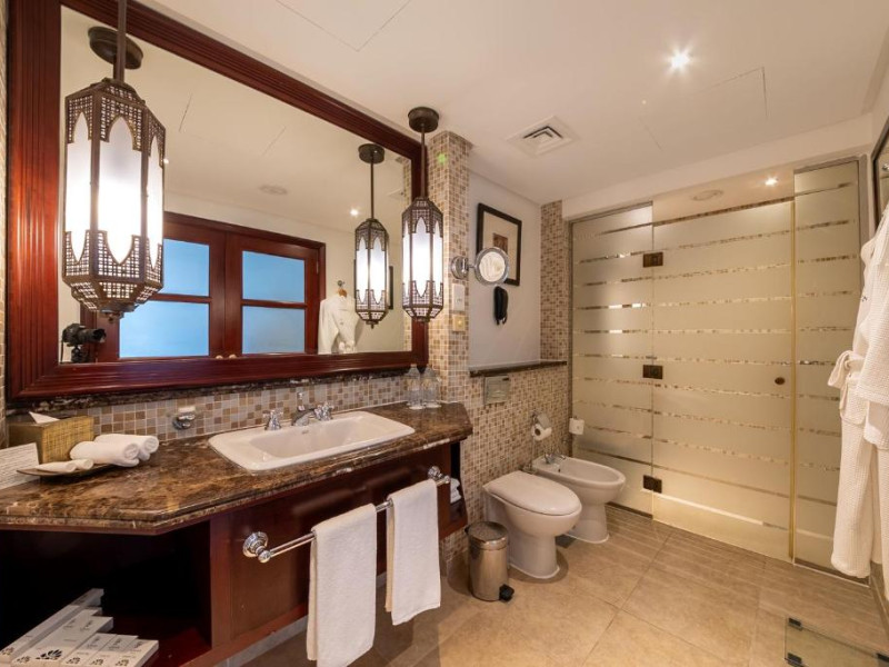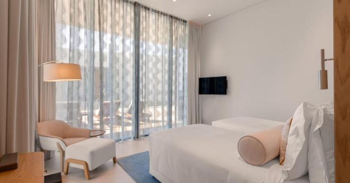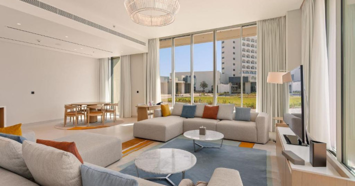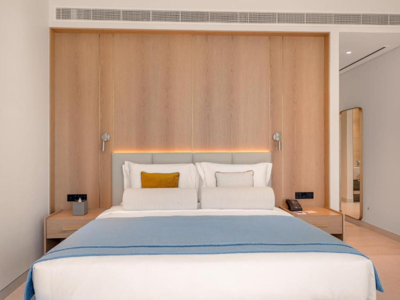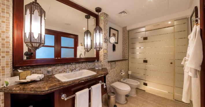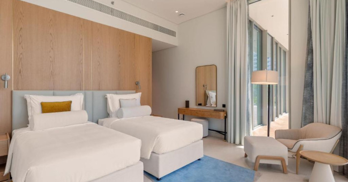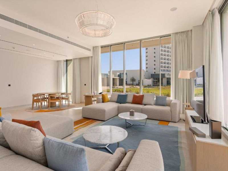 Camerele au scheme de culori luminoase și mobilier din lemn elegant, in stil oriental. Camerele și suitele elegante duc spre un balcon sau o terasă privată, mobilată. Vederea panoramică are vedere la Golful Persic și la grădina luxuriantă amenajată.