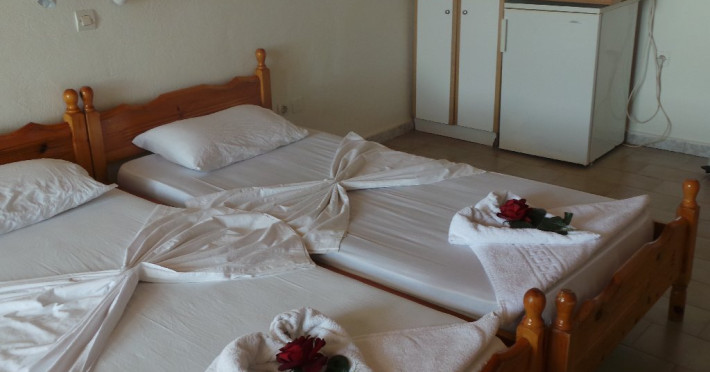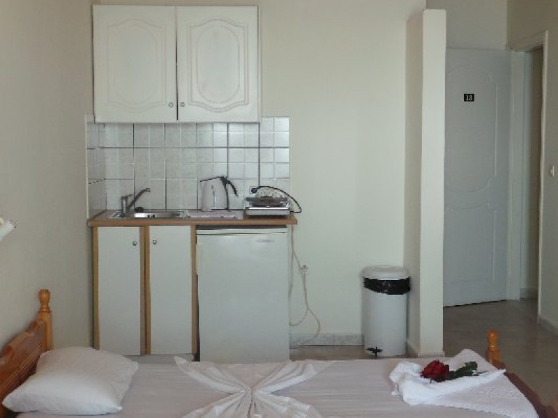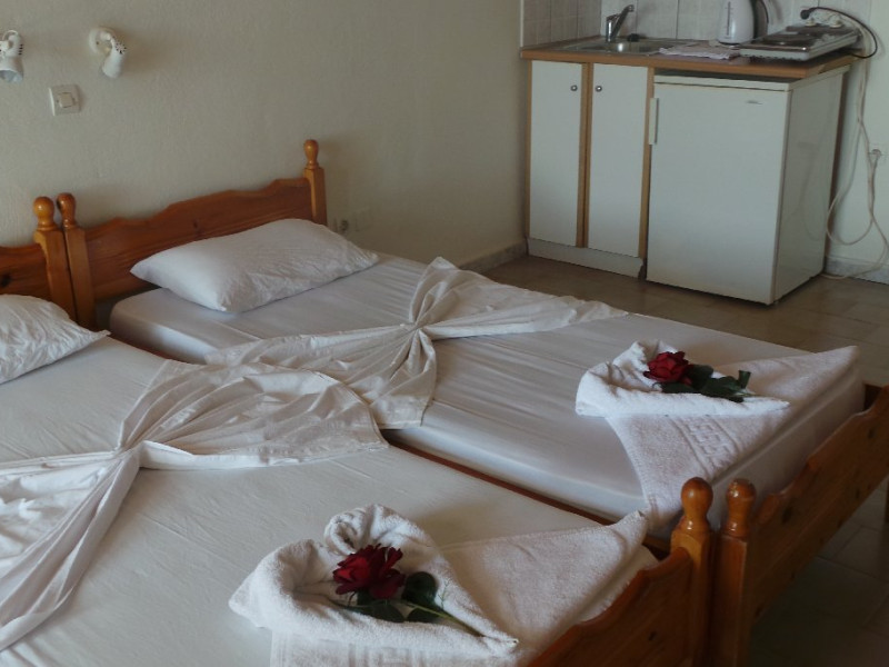 Camere: AKTIPIS STUDIOS dispune de 26 de studiouri, dotate cu: baie, doua paturi simple, TV, aer conditionat (inclus), seif (contra cost). Curatenia in camere se face de 3 ori pe saptamana, lenjeria de pat si prosoapele sunt schimbate de 2 ori pe saptamana.
