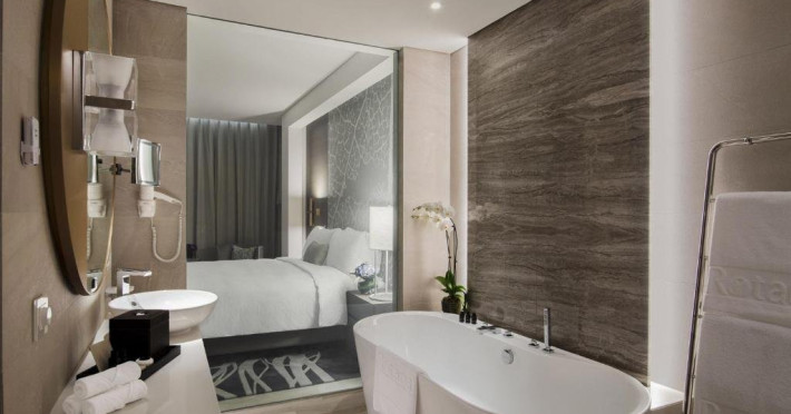 Descriere: Al Bandar Rotana - Dubai Creek este un hotel de 5 stele ultramodern, cu o arhitectura impresionanta si o amplasare privilegiata pe malul apei, in inima zonei istorice a orasului Dubai. Elegant si rafinat, hotelul este ideal atat pentru calatorii de afaceri, cat si pentru turisti, oferind privelisti spectaculoase catre Dubai Creek si skyline-ul orasului. Atmosfera sofisticata, serviciile personalizate si experientele culinare variate transforma fiecare sejur intr-o experienta memorabila.