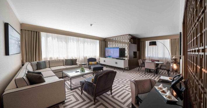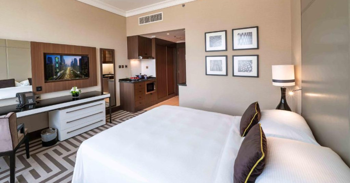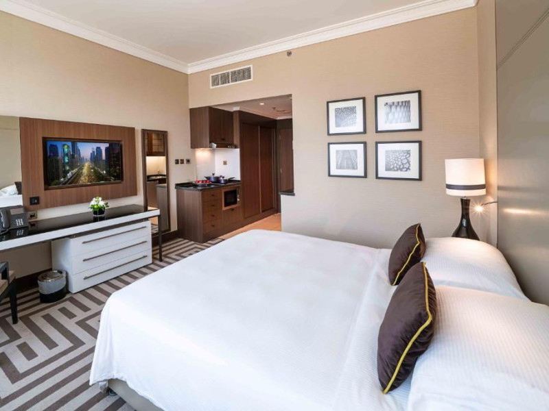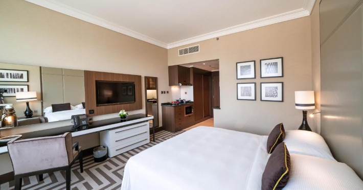Fiecare cameră sau suită oferă o zonă de relaxare, conexiune la internet wireless, două linii digitale, ecran plat LCD cu sistem IPTV și birou executiv. Suitele au o chicinetă complet utilată.
