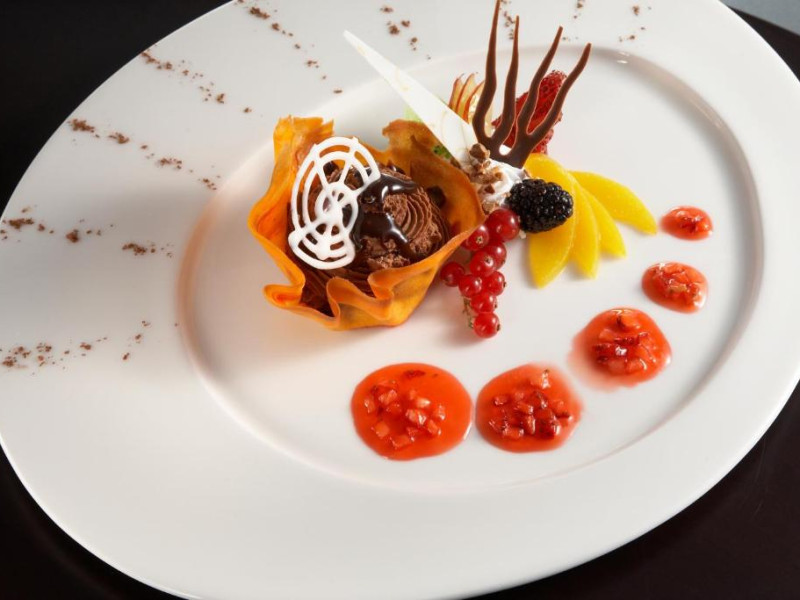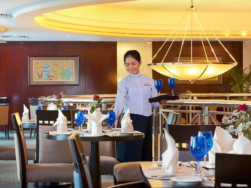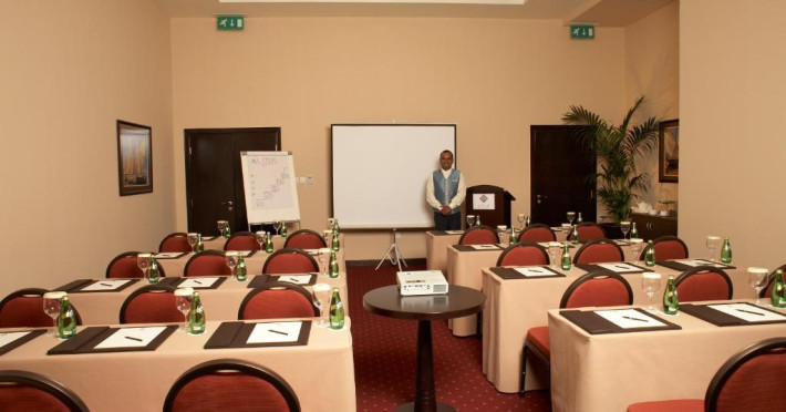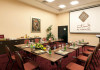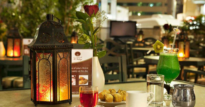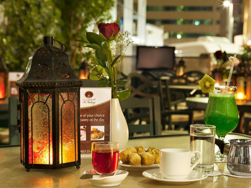 Restaurantul Al Iwan serveste micul dejun tip bufet continental. Pentru pranz si cină, restaurantul oferă preparate din bucătăria internatională si arabă si organizează seri tematice. Oaspetii pot savura băuturi răcoritoare in cafeneaua Al Multaqa, cu vedere la hol, sau pe terasă, in aer liber.