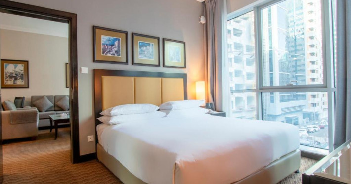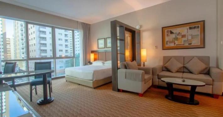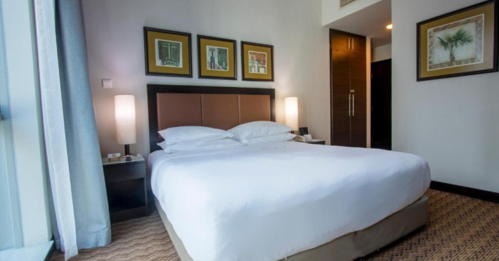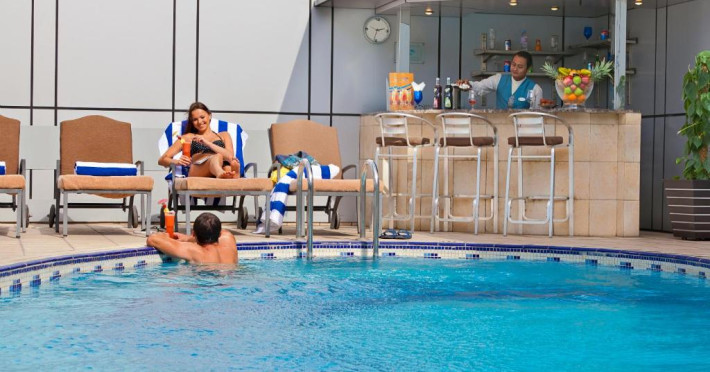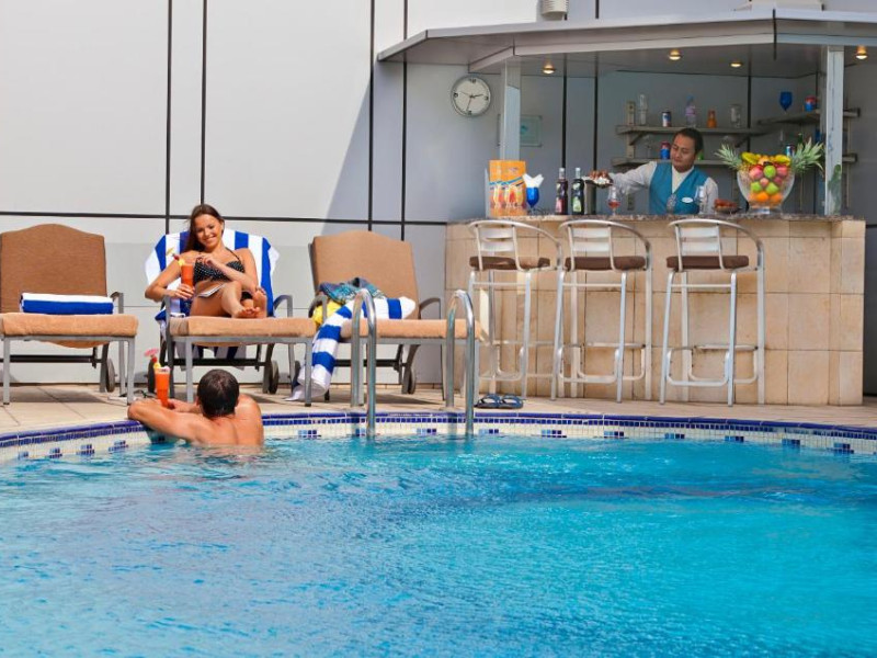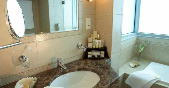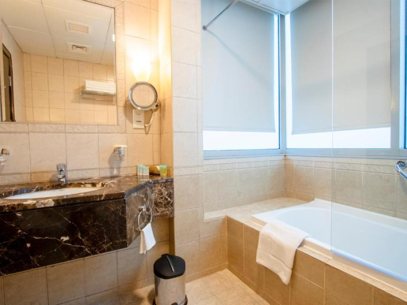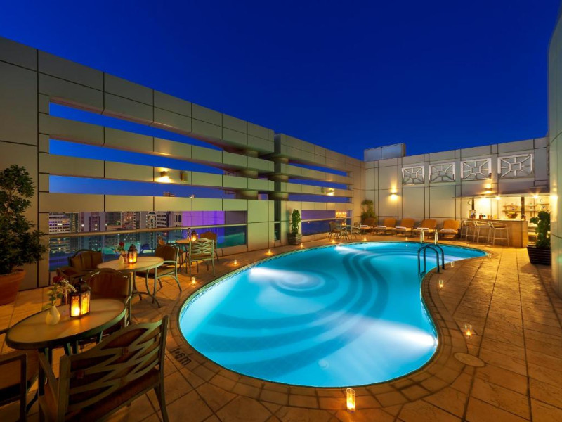 Acest hotel luxos, situat in centrul districtului comercial din Abu Dhabi, are un club de sănătate cu piscină pe acoperiș și saună.