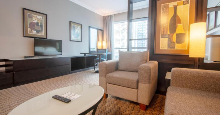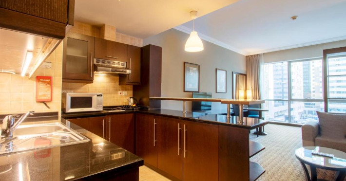 Toate suitele sunt mobilate elegant si au design contemporan. Unitătile au zonă de relaxare elegantă, cu TV prin satelit și aer condiționat. Bucătăria complet utilată are cuptor cu microunde, mașină de spălat și aparat de ceai/cafea.