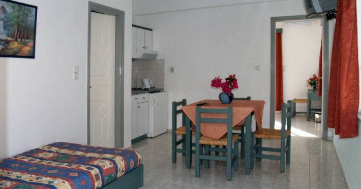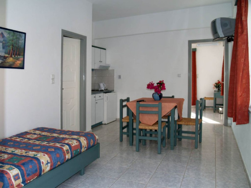 Descriere: Alkion este un complex format din 15 studiouri si apartamente confortabile. Localizare: Apartamentele Alkion sunt localizate in Exopolis, la 2 km de Georgioupolis si la 55 km de aeroportul din Chania.Plaja: Hotelul este situat la aproximativ 2 km de frumoasa plaja de nisip din Georgioupolis. Sezlongurile si umbrelele sunt cu plata. Sporturi acvatice cu plata. Dotari camere: Exista 3 categorii de cazare: studiouri open-plan de 25 mp (max 2+1 pax), apartamente de 45 mp (max 4 pax: 1 pat dublu si 2 paturi single) si apartamente de 52 mp (max 5 pax: 1 pat dublu si 3 paturi single). Toate sunt dotate cu aer conditionat, wi-fi, TV satelit, chicineta echipata complet, baie cu dus, uscator de par, balcon. Facilitati hotel: Receptie 12 ore/zi, sala pentru mic dejun cu terasa, bar la piscina, piscina (08:00-21:00), sezlonguri, umbrele, gradina, parking. Facilitati pentru copii: Piscina, pat pentru infanti si scaune speciale (la cerere). Clasificare oficiala: 2* Pagina web: https://www.alkionapartments.gr Nota informativa: Pentru anumite facilitati din hotel sau din camera, hotelierul poate solicita taxe suplimentare. In momentul sosirii la hotel solicitati receptionerului sa va informeze cu exactitate asupra lor.
