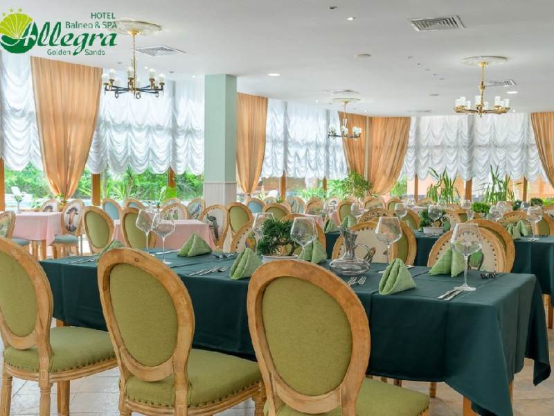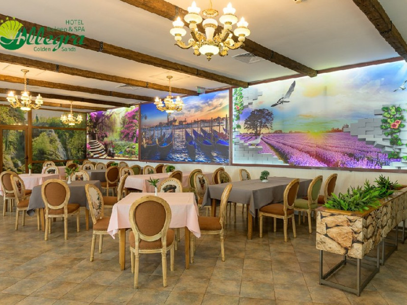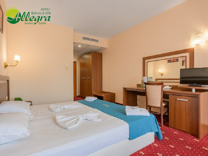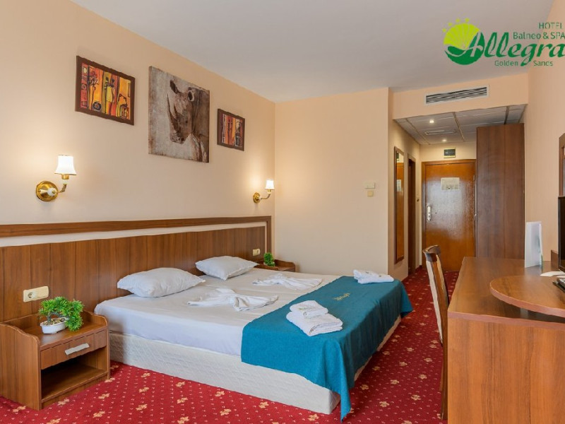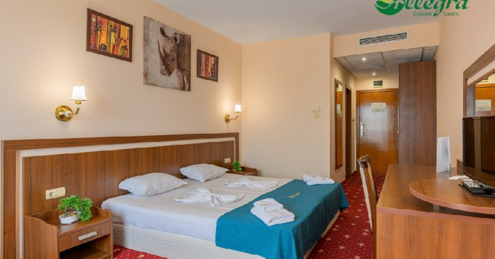 Localizare: Allegra este un hotel situat in partea central superioara a statiunii Nisipurile Aurii. Hotelul se afla la aproximativ 350 de metri de plaja si de centrul complexului. Facilitati hotel: Hotelul pune la dispozitia clientilor: restaurant, piscina, sezlonguri, teren de volei, fitness, camera de sare, SPA, sauna, Wi-Fi, parcare (contra cost), club pentru copii, coafor (contra cost), medic (contra cost), masaje si tratamente spa (contra cost), balneologie (contra cost), bar si pool bar (contra cost). Dotari camera: Camerele sunt dotate cu aer conditionat, TV, Wi-Fi, minibar, baie private, uscator de par. Nota informativa: Pentru anumite facilitati din hotel sau din camera, hotelierul poate solicita taxe suplimentare.In momentul sosirii la hotel solicitati receptionerului sa va informeze cu exactitate asupra lor. Website: https://hotel-allegra.com/en