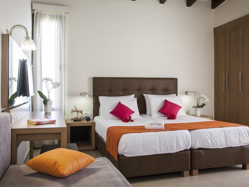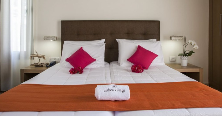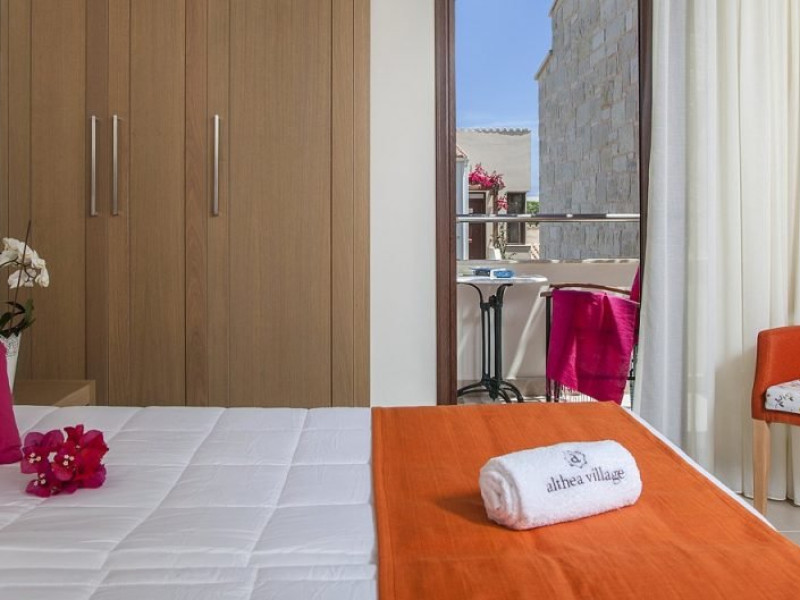 Descriere: Un resort primitor cu o gradina impresionanta de palmieri, flori si portocali, recomandat pentru un sejur relaxant. Localizare: Situat in Kato Daratso, la aproximativ 650 de metri de plaja de nisip Agii Apostoli, la 4 km de Chania si 25 km de aeroport. Dotari camere: Camerele au fost renovate integral si sunt dotate cu aer conditionat, televizor, frigider, uscator de par, seif (contra cost), telefon, acces internet WiFi (gratuit). Facilitati hotel: restaurant, bar, piscina, centru fitness, acces internet WiFi (gratuit), teren de tenis (contra cost), sala de jocuri. Facilitati copii: loc de joaca pentru copii, piscina. Plaja: de nisip, la aprox 650 m de hotel. Web: www.altheavillage.gr Nota informativa: Pentru anumite facilitati din hotel sau din camera, hotelierul poate solicita taxe suplimentare. In momentul sosirii la hotel solicitati receptionerului sa va informeze cu exactitate asupra lor.