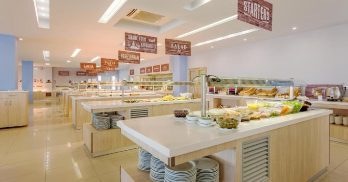 Facilitati hotel:Hotelul are receptie 24h, restaurant, bar, acces internet wifi in receptie, 6 piscine exterioare cu sezlonguri si umbrelute gratuite, tenis de masa, sala de fitness, loc de joaca pentru copii, camera de bagaje, parcare.