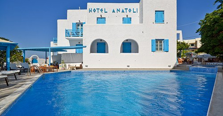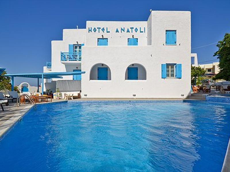 Hotelul este situat intr-o zona linistita in apropierea orasului Naxos. Anatoli este format din mai multe corpuri de cladire cu 27 de camere cu vedere la castel sau la mare. Sunt acceptate animalele de companie. -LOCALIZARE: Hotelul este situat in apropierea orasului Naxos la 1km distanta fata de port, la 2 km distanta de aeroport si 850m distanta fata de plaja Saint George. -DOTARI CAMERE: A/C, TV, dus, telefon, minifrigider, -FACILITATI HOTEL: TV lounge, receptie, bar, seif, fax, snack bar, piscina cu bar, parcare privata, Wi-Fi. -PLAJA: Plaja Saint George se gaseste la 850m distanta de hotel. -TIP MASA: Mic dejun -ALTE INFORMATII: Website: www.hotelanatoli.com