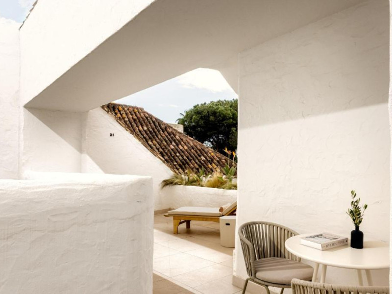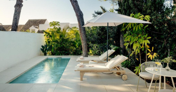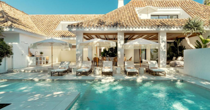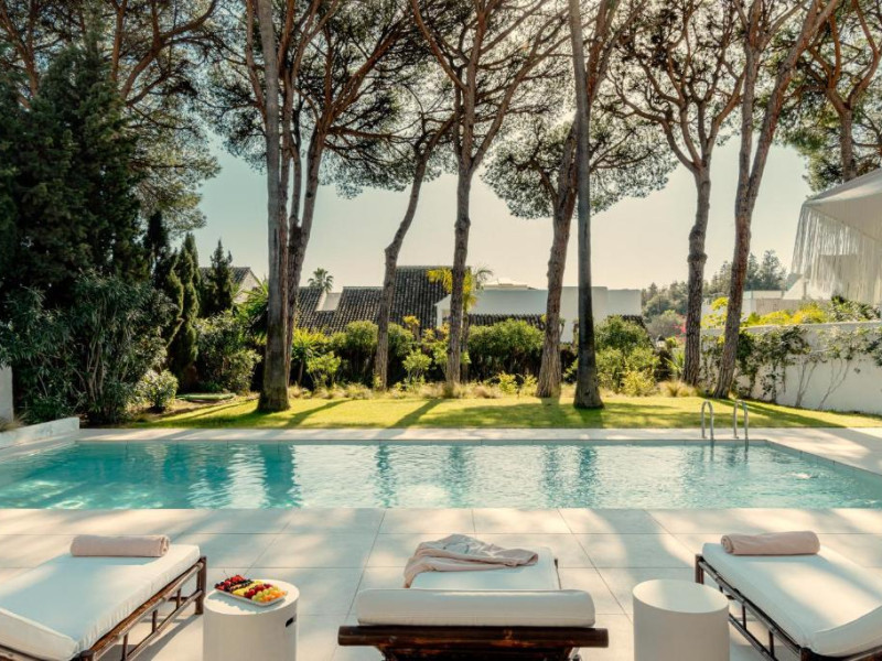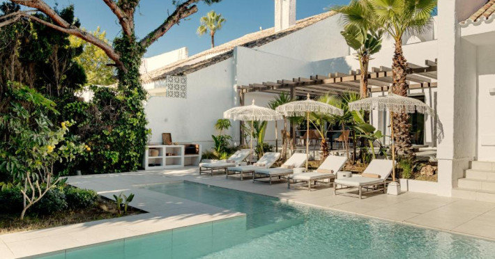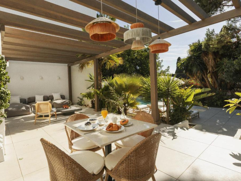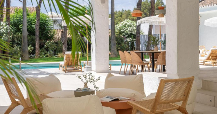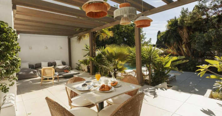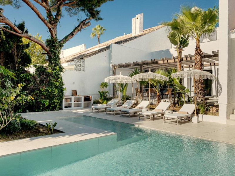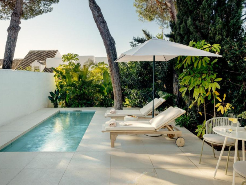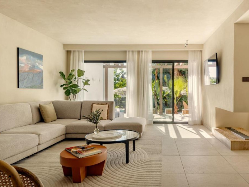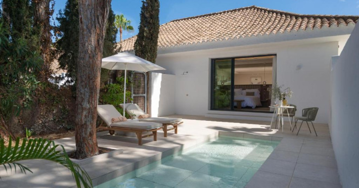 Anfitrión Villas & Suites se află in Marbella, la 3 minute de mers pe jos de Plaja Nueva Andalucía și la 30 km de La Cala Golf, și are WiFi gratuit, vedere la grădină și o piscină in aer liber.