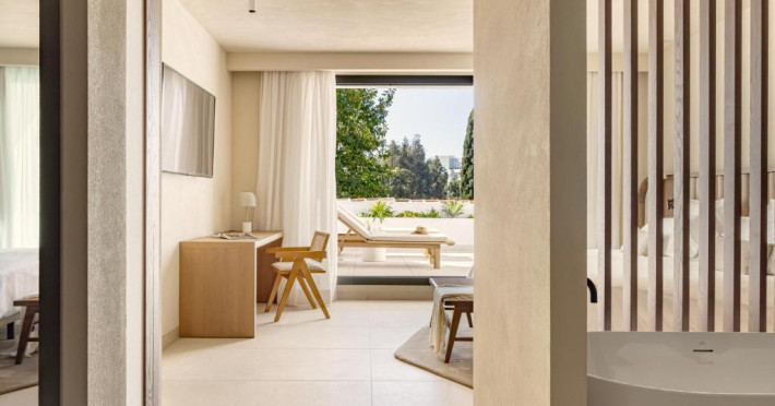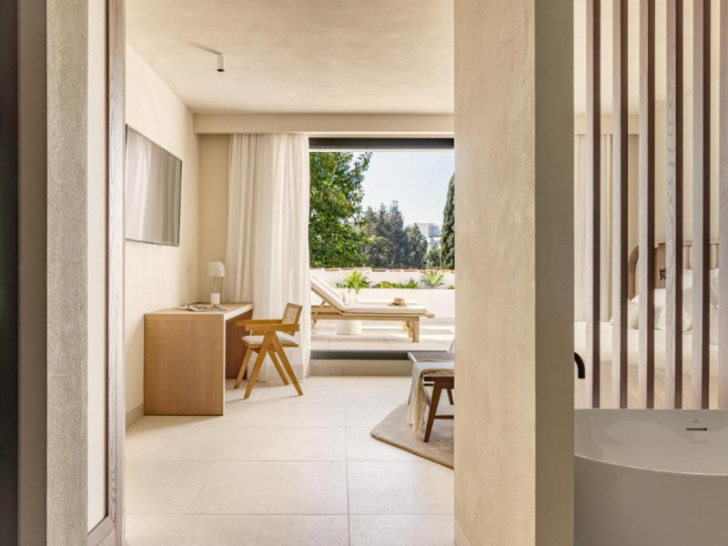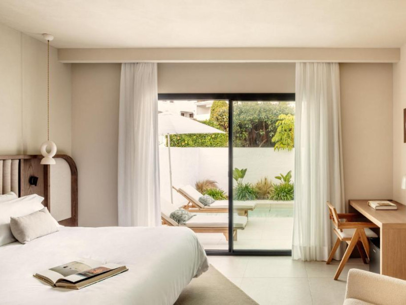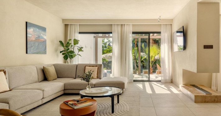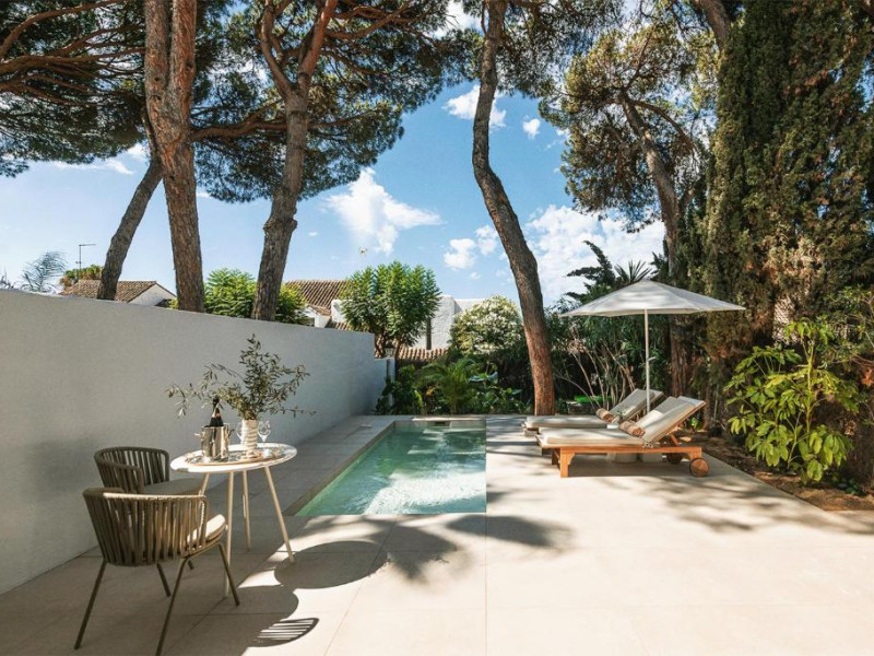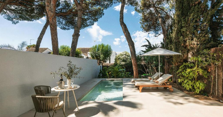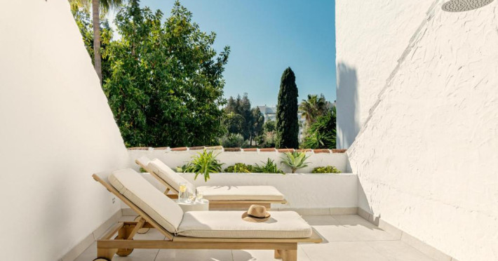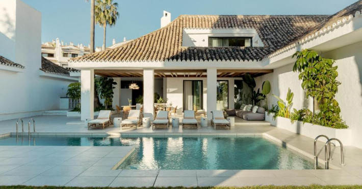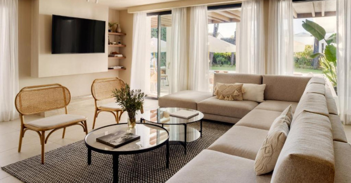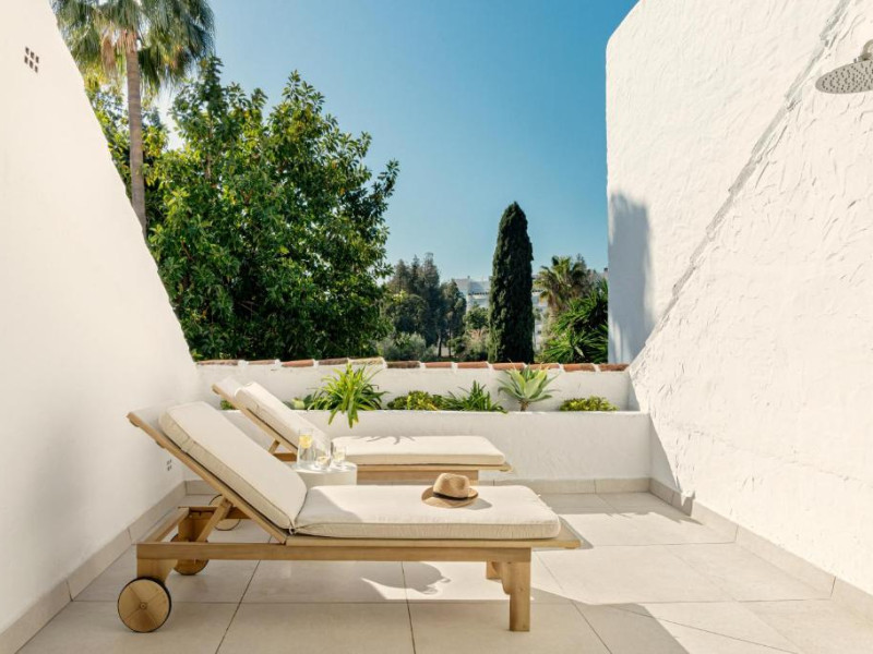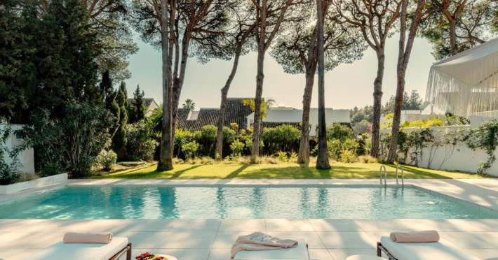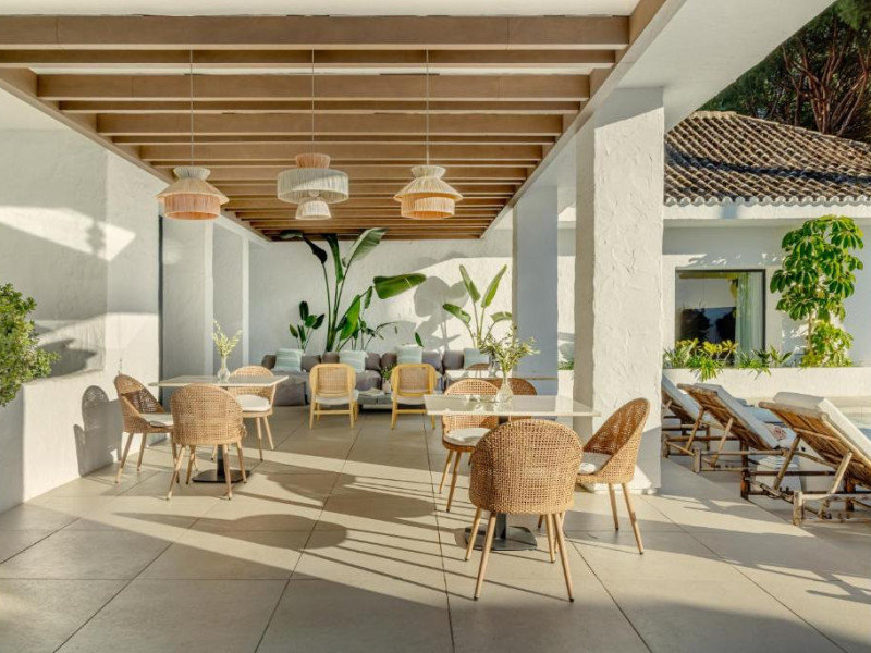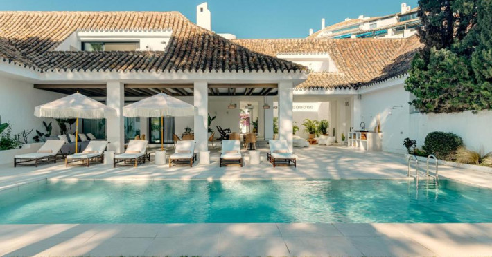 Anfitrión Villas & Suites se află in Marbella, la 3 minute de mers pe jos de Plaja Nueva Andalucía și la 30 km de La Cala Golf, și are WiFi gratuit, vedere la grădină și o piscină in aer liber.