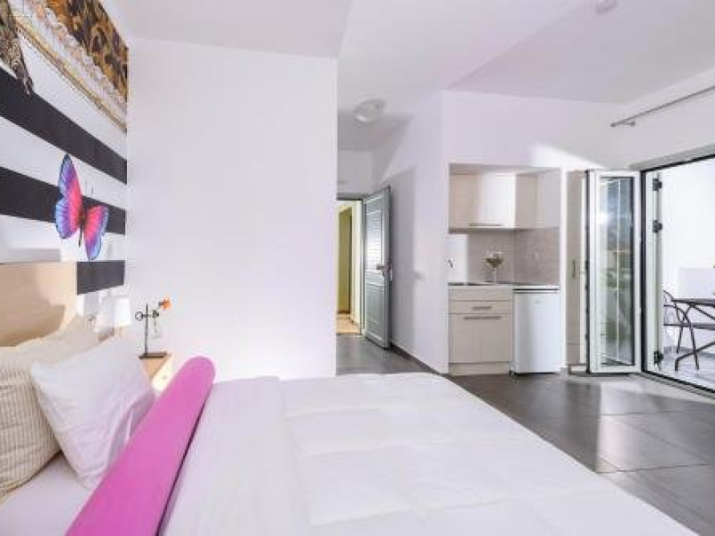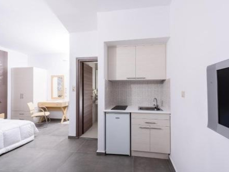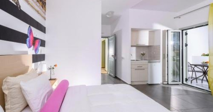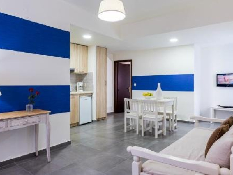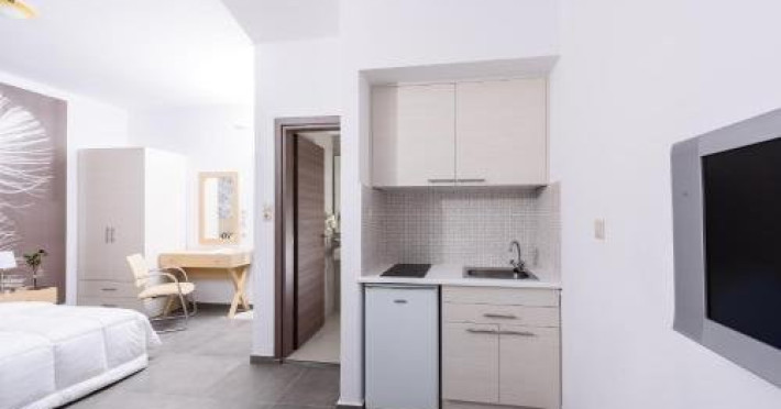 Dotari camere: Angela Studios and Apartments are 15 studiouri si apartamente dotate cu aer conditionat, wi-fi, telefon, seif, TV satelit, chicineta complet uitilata, masa cu scaune, baie cu dus sau cada, uscator de par, balcon/terasa.