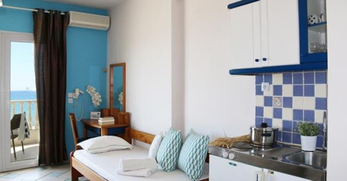 Descriere: Hotelul ANNA BEACH, o cladire foarte frumoas langa plaja, cu camere mari, mobilate elegant, cu servicii impecabile. Anna Beach este un hotel mic, dar bine organizat, cu o terasa si un bar cu vedere la mare, unde puteti savura mese usoare sau un cocktail la un apus de soare frumos. Piscina are o vedere impresionanta la munte, inconjurata de o terasa plina de sezlonguri. Plaja este la doar cativa pasi. Localizare: pe plaja in Limanaria, unul din cele mai frumoase orasele din Thassos Facilitati hotel: piscina, piscina pentru copii, terasa cu vedere la mare, sezlonguri, lounge bar Dotari camera: Studiourile au chicinet cu 2 arztoare electrice si frigider, aer conditionat cu tax suplimentar, TV, radio, articole de toalet, dus si balcon. Exist o canapea extensibil potrivit pentru un copil de pAen la 12 ani. Masa: mic dejun Categorie oficiala: 2* Pagina web: https://dhotels.gr/en/anna-beach-hotel.html