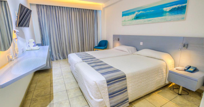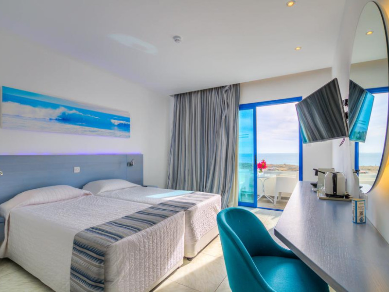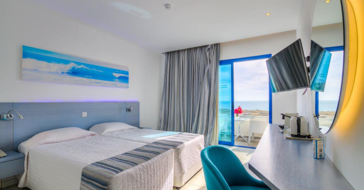 Surrounded by tropical palm trees, the Anonymous Beach Hotel features its own outdoor swimming pool bathed in Mediterranean sunshine. There is also an a la carte restaurant where you can enjoy the regular entertainment and themed evenings. Guests can start their day with a buffet breakfast, while certified Cypriot breakfast can also be enjoyed on Tuesday and Friday. Then choose from the à la carte lunch selection and themed evening buffets beneath the stars. The Anonymous Beach lies just a 15-minute walk from the lively town centre, facing the famous bay. Here you can simply relax or try out the range of exciting water sports on offer. This is our guests' favourite part of Ayia Napa, according to independent reviews. This property also has one of the best-rated