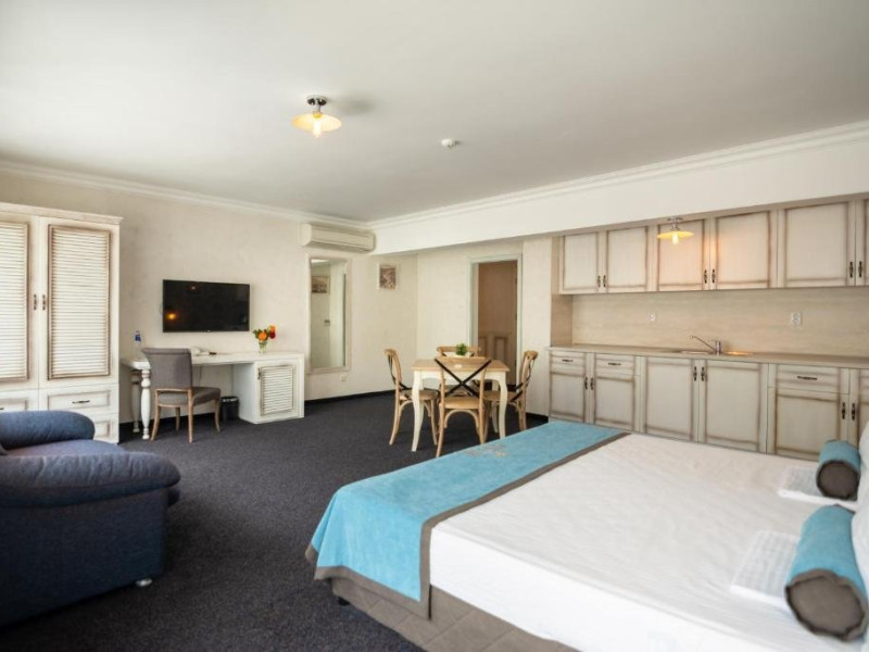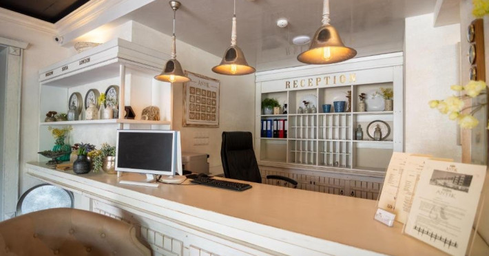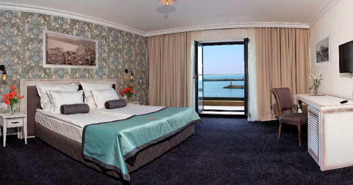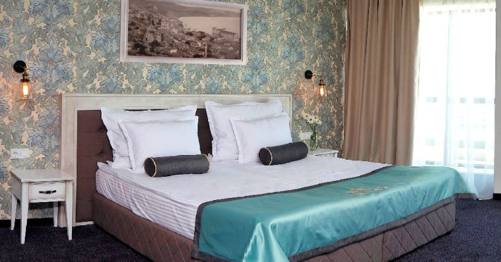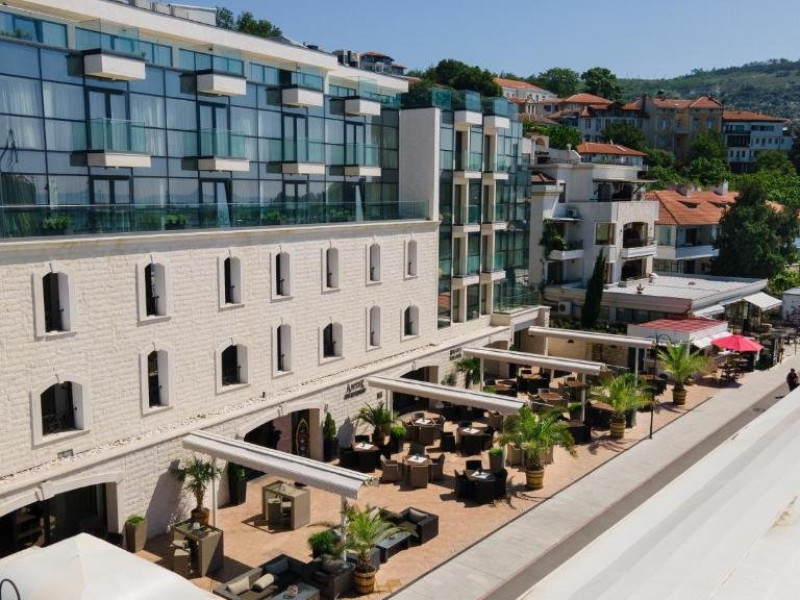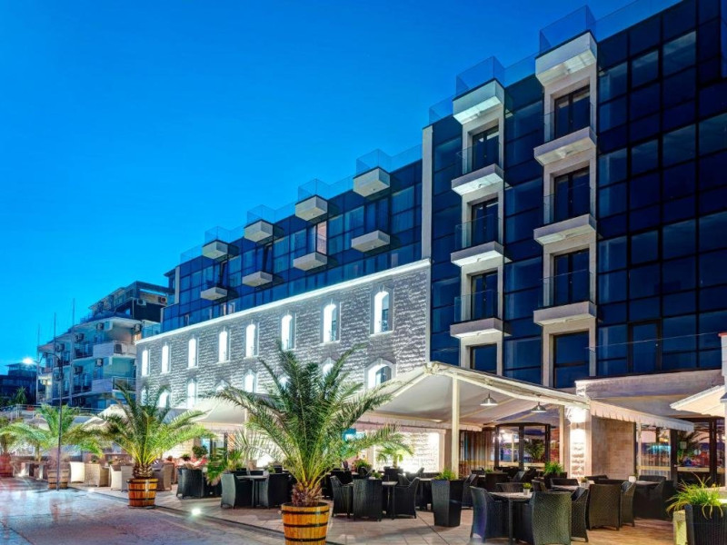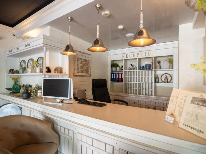Hotel Antik este un hotel boutique luxos, mobilat, chiar pe malul mrii. Localizare: Situat la cativa metri de port la doar 200 de metri de plaj Cai de centrul orasului. Dotari camere:Pentru confortul oaspetiailor nostri, v oferim cazare in camere duble si studiouri de lux, cu vedere la mare sau la parc. Fiecare camer are aer conditionat si TV cu ecran plat cu canale prin satelit, seif, Wi-Fi gratuit, baie cu dus, articole de toalet gratuite si usctor de pr. Facilitati hotel:Restaurant ,WI Fi,camere spatioase si luxoase.