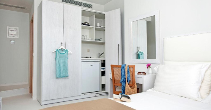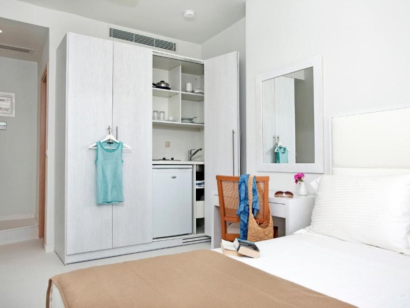 Cazare confortabilă: Aparthotelul oferă camere de familie cu balcoane, chicinete și băi private. Fiecare unitate include aer condiționat, birou și televizor cu ecran plat, asigurand un sejur confortabil.