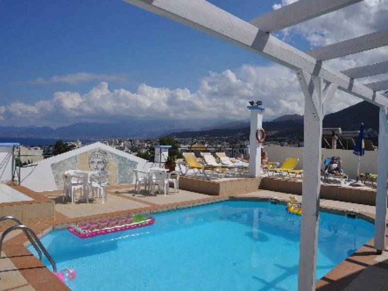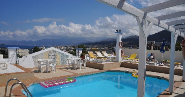 Descriere HOTEL APOLLO APARTMENTS: Hotelul are avantajul unei locatii perfecte, in centrul statiunii Hersonissos, in apropierea celebrelor cluburi si terase. Se recomanda tinerilor. Tip masa: all inclusive Localizare HOTEL APOLLO APARTMENTS: Hotelul este localizat central in Hersonissos, la aproximativ 200 m de plaja. Plaja: HOTEL APOLLO APARTMENTS este situat la aproximativ 200 m de plaja, sezlongurile si umbrelele sunt contra cost. In Hersonissos sectoare de plaja cu nisip alterneaza cu zone stancoase. Dotari camere: HOTEL APOLLO APARTMENTS dispune de studiouri si apartamente dotate cu aer conditionat, seif (~3 EUR/zi), baie cu dus sau cada, uscator de par, televizor, telefon si mini bucatarie (plita, frigider si cuptor cu microunde). Facilitati HOTEL APOLLO APARTMENTS: Hotelul dispune de urmatoarele facilitati si servicii: bar, gradina, piscina exterioara pe acoperis, terasa, umbrele si sezlonguri, seif, caldura, camera de depozitat bagaje, snack bar, internet wireless gratuit in zonele publice, schimb valutar. Clasificare agentie: 3* Facebook: https://www.facebook.com/apolloapts/