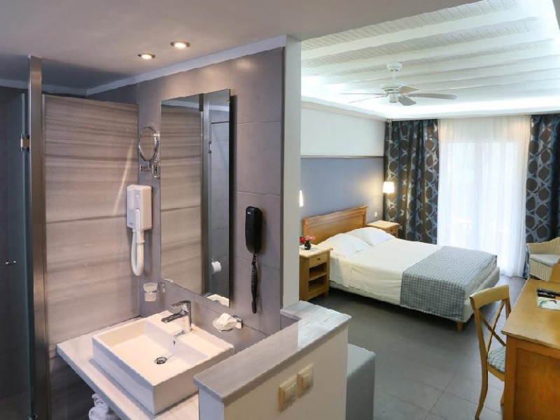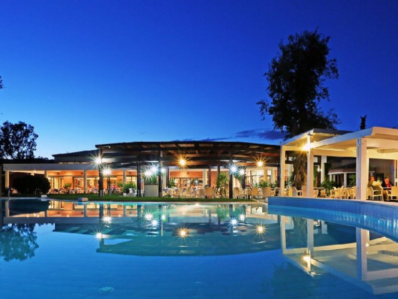 Descriere: Construit in stilul unui sat corfiot, acest hotel este bine dotat camere de pana la patru persoane, un restaurant tip bufet, un restaurant a la carte, trei baruri, trei piscine exterioare, o sala de sport si un spa centru.