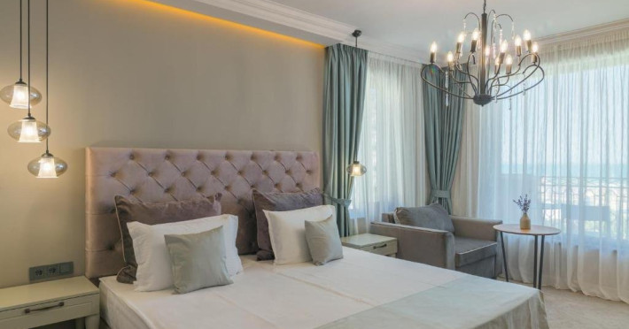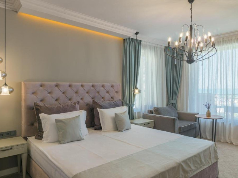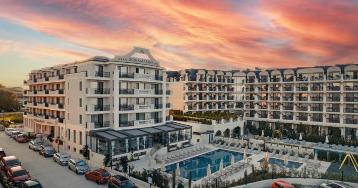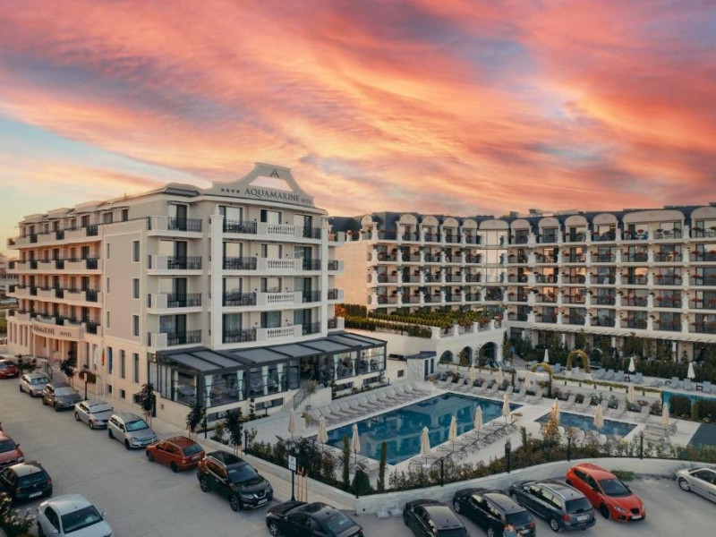 Localizare: Este localizat la 50 m de plaja minunata Kranevo. Unitatea de cazare se afla la 6 km distanta de plaja Albena si la 400 de Black Sea Ice Arena. La doar 33 de km de hotel se afla Aeroportul Varna. Facilitati hotel: Hotelul Aquamarine Kranevo ofera cazare in camere duble confortabile si luxoase. Hotelul dispune de 66 de camere, dintre care 60 de camere duble si 6 apartamente. Hotelul are urmatoarele facilitati: Piscina in aer liber, sala de fitness, seif in camere, internet wireless in tot hotelul. Dotari camere: Toate camerele dispun de aer conditionat individual, TV LCD, cablu TV, Wi-Fi, telefon in camer, telefon in baie, minibar, seif, baie cu dus sau cada, uscator de par, ceainic electric. Site: https://aquamarine-kranevo.com/