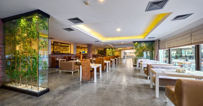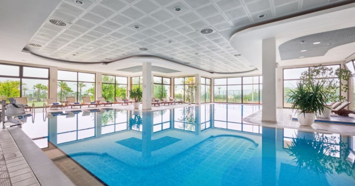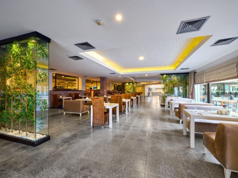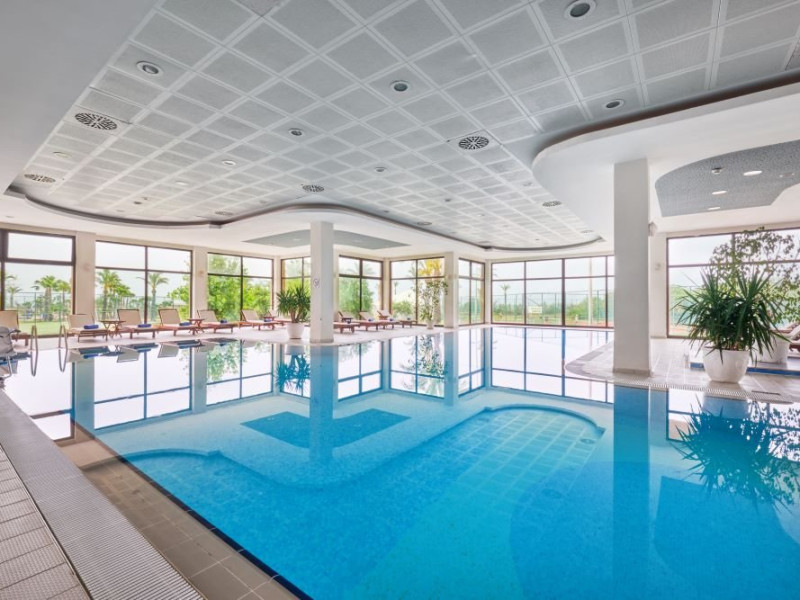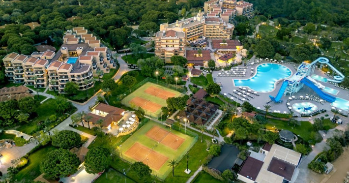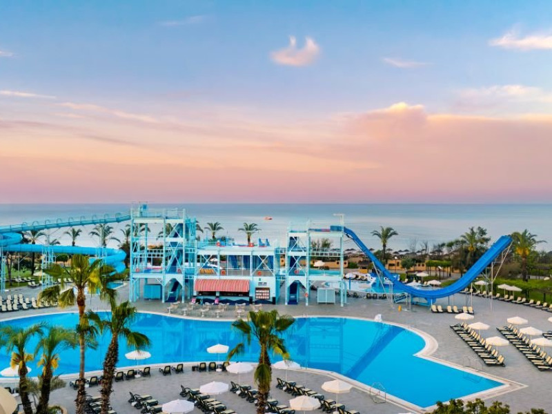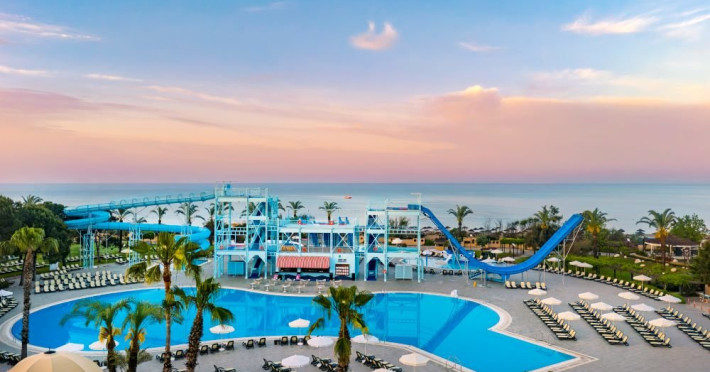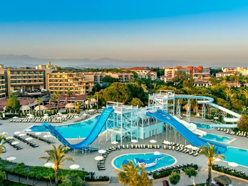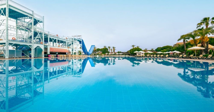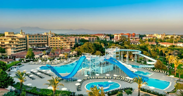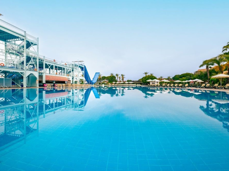 Facilitati hotel: Oaspetii pot beneficia de restaurant principal, restaurante A la Carte, baruri, terase, piscine exterioare, piscina interioara (incalzita), Aqua Park, tobogane, sezlonguri si umbrele, programe de animatie si divertisment, tenis de masa, teren de tenis, volei, boccia, sporturi acvatice, parcare, centru spa, sala fitness, piscine pentru copii, tobogane, kids club.