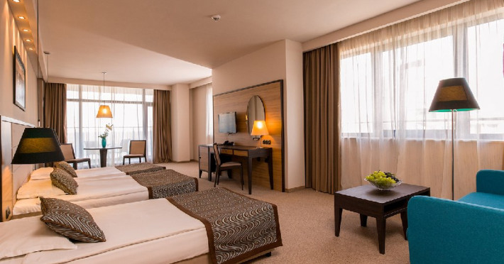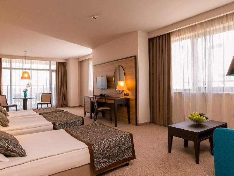 Localizare: Hotelul este situat la aproximativ 150 metri de plaja si la aproximativ 600 metri de centrul statiunii Nisipurile de Aur. A fost construit in 2004 si renovat in 2013. Facilitati hotel: Hotelul pune la dispozitia clientilor restaurant principal, baruri, centru spa (contra cost), schimb valutar, room service (contra cost), piscina interioara si exterioara, centru SPA (contra cost), parcare (contra cost). Facilitati pentru copii: mini club pentru copii cu varste intre 4-12 ani, mini disco, sectiune pentru copii la piscina, patuturi pentru bebelusi (gratuite). Dotari camere: Camerele sunt dotate cu TV, telefon, aer conditionat, baie cu cabina de dus si uscator de par, balcon. Animalele de companie nu sunt acceptate.