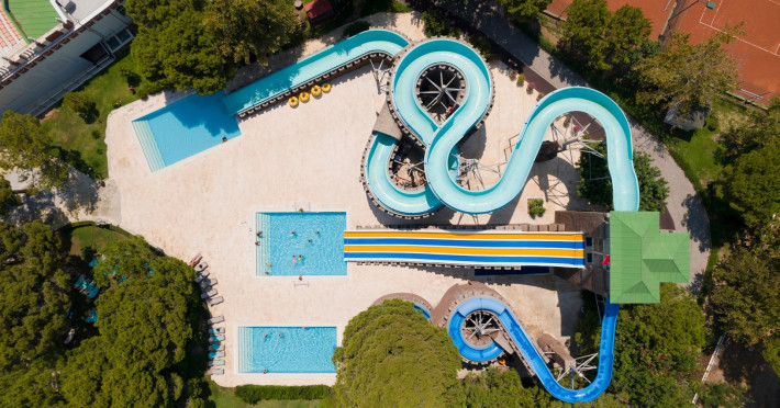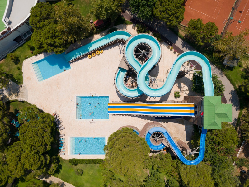 piscina cu tobogane
