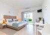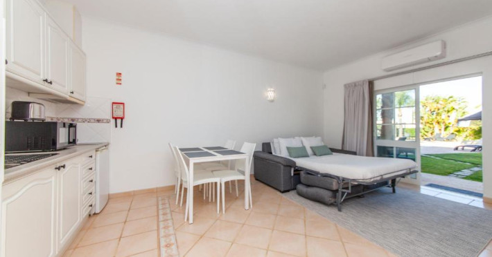 Fiecare studio și apartament de la Atalaia Sol Aparthotel - tenis și piscină incălzită iarna are o bucătărie complet utilată și televizor. Camerele au vedere la piscină și grădină.
