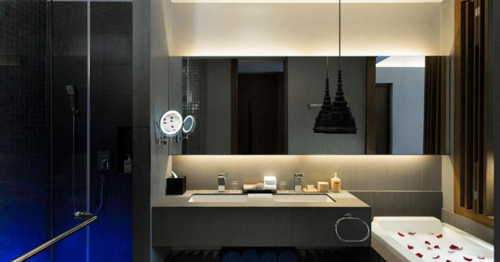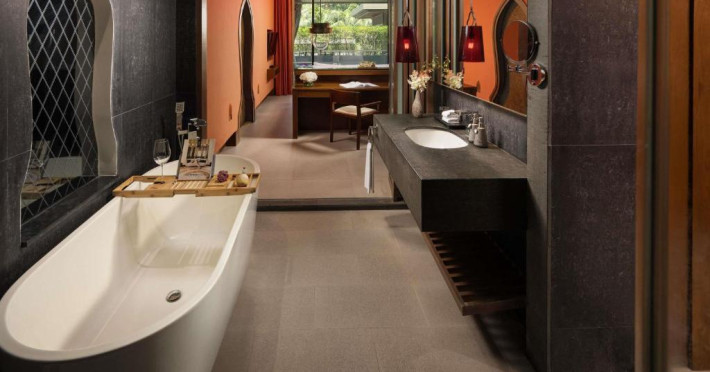 Un serviciu extins de băuturi așteaptă oaspeții la barul de pe acoperiș al complexului, oferind in același timp vedere la golf. Restaurantul cu 3 destinații de luat masa al hotelului oferă o selecție de preparate thailandeze, franceze, italiene, australiene, indiene și chinezești. Există o terasă cu grătar unde oaspeții pot savura și fructe de mare.