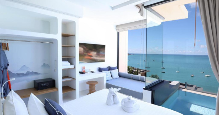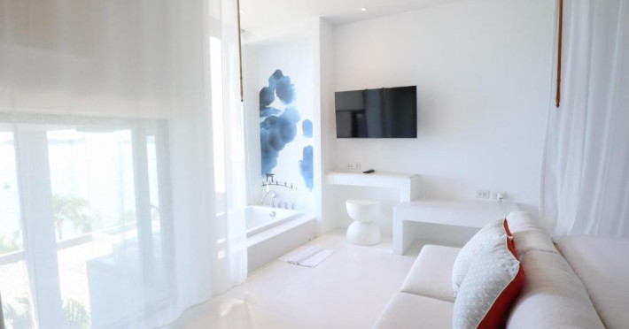 Oferind vedere la mare și la piscină prin peretele de sticlă, fiecare vilă este dotată cu TV cu ecran plat, DVD player și canapele. Băile private sunt dotate cu duș, cadă, uscător de păr și articole de toaletă gratuite.