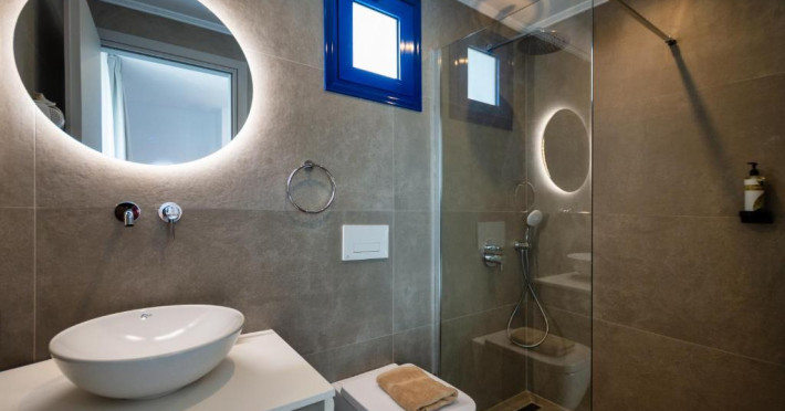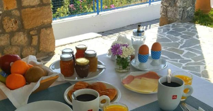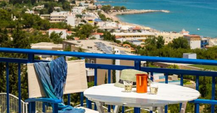Situat pe faleza de deasupra plajei Stegna, Bella Vista Stegna se bucură de vederi panoramice la mare. Oferă cazare la malul mării, cu balcon cu vedere la Marea Egee și la munți.