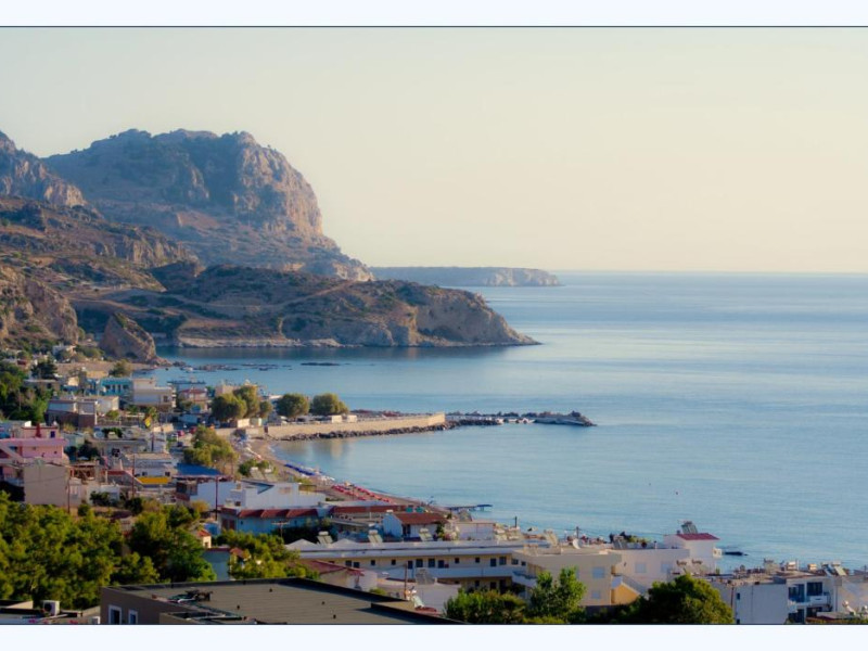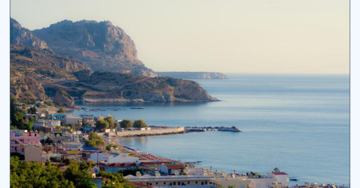 Plaja Stegna este organizată și oferă șezlonguri și umbrele. Restaurante, magazine și baruri se află in apropiere. Este situat in partea centrală a insulei, la 30 km de orașul Rodos, la 35 km de aeroport și la 19 km de Lindos.