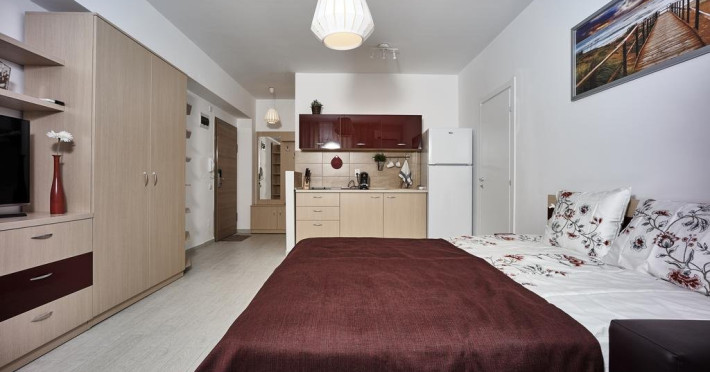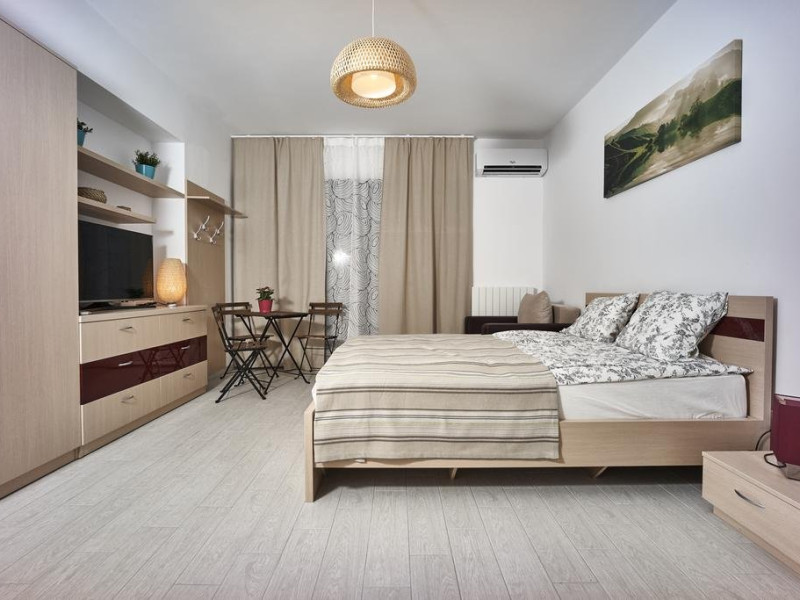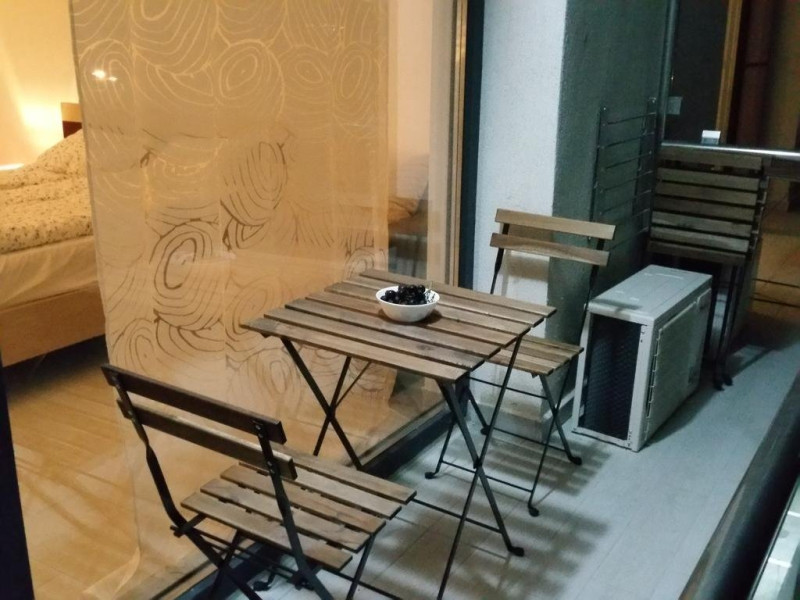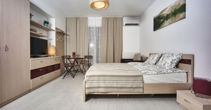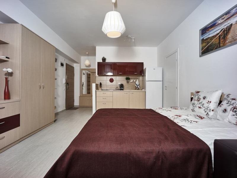 Studioul RIVIERA este la 2 minute de mers pe jos de plaja, in partea de nord a statiunii Mamaia, intr-o zona renumita pentru viata de noapte intensa, cea a cluburilor Loft, Le Gaga, Puro Beach, EGO si Fratteli Beach. Este situat la etajul 3 al unui imobil rezidential nou, construit in 2016 si care dispune de paza si acces restrictionat. Proprietatea este lipita de celebrul club Loft Mamaia. Studioul are o suprafata de 37 mp si este dotat cu o bucatarie complet dotata cu frigider, plita electrica cu 2 ochiuri, expresor de cafea, vesela, pahare si tot ce este necesar unui sejur comfortabil. Dispune de baie proprie cu cabina de dus, uscator de par si prosoape si produse de igiena incluse. Oaspetii beneficiaza de aer conditionat, TV ecran plat cu diagonala mare si cablu TV, un pat matrimonial mare si un fotoliu pat. Terasa este dotata cu masa cu scaune, permitand servirea mesei si ofera o vedere partiala la lacul Siutghiol. Accesul la WiFi este gratuit.