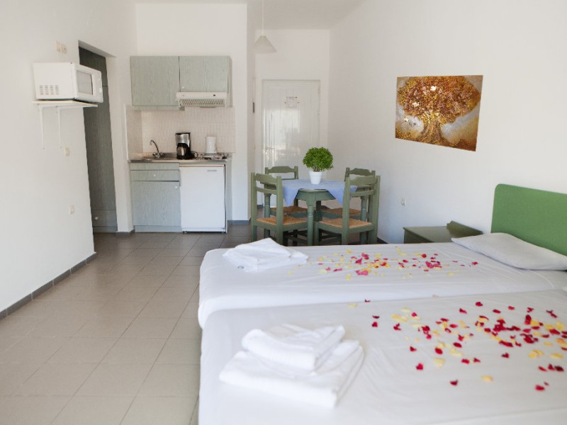 Dotari camere: Hotelul dispune de 26 studiouri si 7 apartament 1 bedroom open plan dotate cu aer conditionat (gratuit), acces internet WiFi (gratuit), seif (contra cost, aprox 15 EUR/saptamana), televizor, mini bucatarie (frigider, plita, cuptor cu microunde, fierbator de apa, facilitati pentru cafea), uscator de par, balcon/terasa.