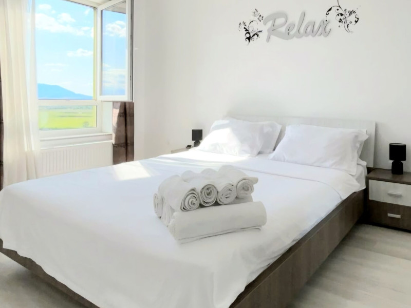 Apartamentele noastre ofera tot confortul pentru un sejur placut si relaxant. Dispun de un dormitor cu pat matrimonial, bucatarie moderna complet utilata, un living spatios cu canapea extensibila dubla, o terasa amenajata cu vedere spre munti si parcare privata. Apartamentele sunt amplasate intr-un complex rezidential cu locuri de joaca, spatii verzi generoase, zone de relaxare pentru momente de liniste, restaurante si diverse magazine. Statia de autobuz se afla la 2 minute de mers pe jos, oferind acces facil catre centrul istoric (la 8 minute distanta), gara (la 15 minute distanta), Aeroport (la 9 minute distanta) si Poiana Brasov. Unitatile de cazare sunt usor accesibile, fiind ideale pentru pentru familiile cu copii si calatorii cu scaune cu rotile; o mica rampa ofera acces la hol, de acolo, se poate ajunge la liftul accesibil care deserveste toate etajele, de la care se pot accesa intrarile in apartamente.
