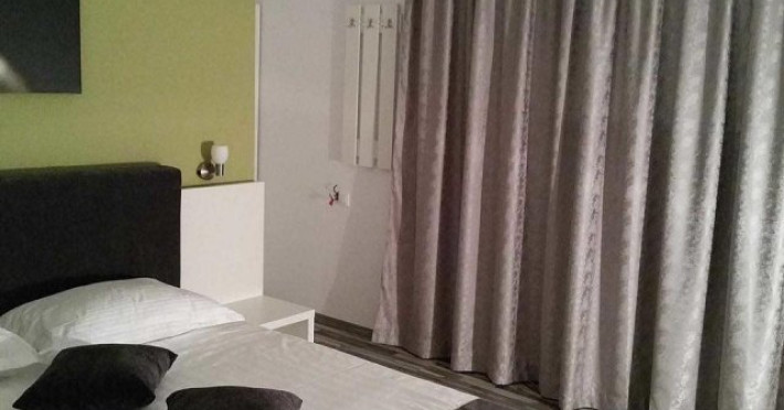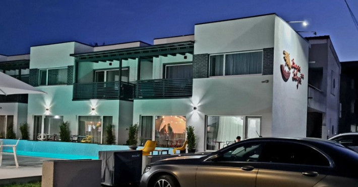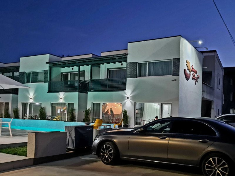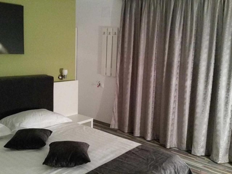 Dotari camere Camerele duble sunt dotate cu paturi matrimoniale (160x200), tv, minibar, aer conditionat, baie proprie cu dus, uscator de par si cosmetice hoteliere, internet , plase de tantari, podele de parchet, terasa amenajata cu doua scaune si masuta si au suprafata de 18 mp. Apartamentul este format dintr-un dormitor cu pat matrimonial (160x200), living cu canapea extensibila (160x200) separate cu usa, microunde, hol, baie proprie cu dus, uscator de par si cosmetice hoteliere, internet, plase de tantari, podele de parchet, terasa amenajata cu doua scaune si masutasi au suprafata de 35 mp.