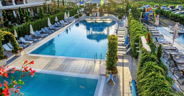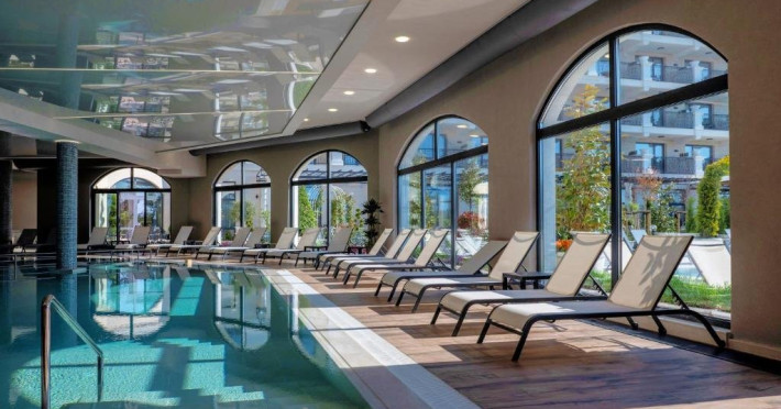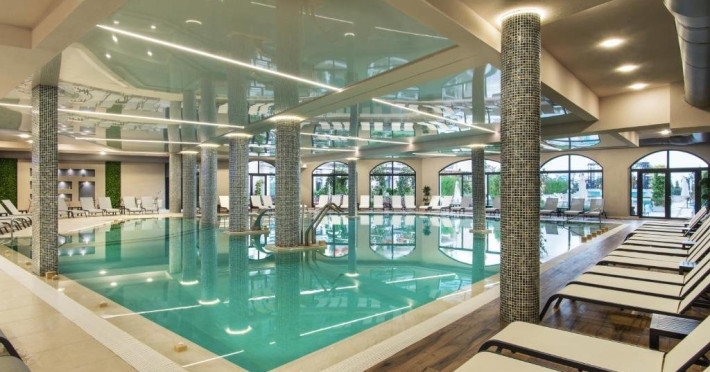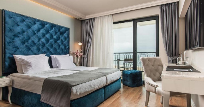 Facilitati hotel: Hotelul dispune de o plaja privata, un bar, o piscina in aer liber, restaurant si o piscina de interior si un centru de fitness. Acest hotel dispune si de o zona de wellness, unde clientii se pot relaxa. In aceasta zona este disponibila cada cu hidromasaj, camera de sare, sauna pe baza de plante.