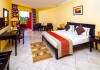 Fiecare cameră este dotată cu un TV cu ecran plat cu canale prin satelit individuale. Toate unitătile includ o zonă de relaxare, pentru un plus de confort. Unele camere se bucură de vedere la mare, la munte sau la piscină. Fiecare cameră are o baie privată cu dus.