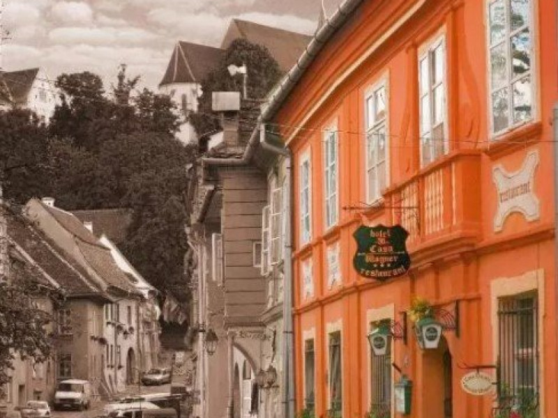 Casa Wagner va invita in cetatea medievala a Sighisoarei, in inima Transilvaniei pentru a trai o experienta de neuitat. Hotelul dispune de 32 de spatii de cazare, un restaurant propriu cu o capacitate de 80 de locuri, si cel mai important un personal pregatit si aflat in fiecare moment in slujba turistilor cazati. Serviciile oferite clientilor nostri sunt dintre cele mai variate: incepand de la clasicul wake up call si pana la asigurarea serviciilor de secretariat, curierat, curatatorie etc. Camerele sunt dotate cu linie telefonica internationala, cablu TV si internet, mini bar, cos generos cu produse cosmetice si uscator de par, etc. hotel Casa Wagner, hotel Casa Wagner Sighisoara, cazare sighisoara, cazare in sighisoaraSituat in Sighisoara asa numita Perla Transilvaniei Cea mai veche cetate locuita din Europa Cele 2 cladiri care gazduiesc acum complexul, dateaza din sec. XVIII si sunt inscrise pe lista monumentelor istorice aflate in patrimoniul mondial UNESCO (22 de camere duble/ twin, 5 apartamente, 5 camere single).