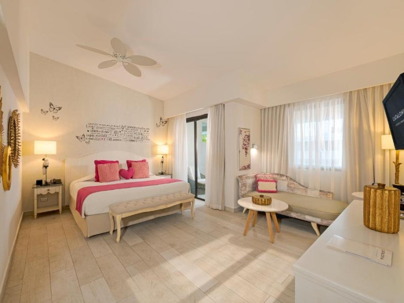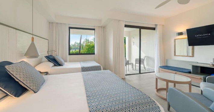 Dotari camere Complexul Catalonia Bavaro Beach Resort Golf and Casino pune la dispozitia oaspetilor camere tip junior suites, avand o capacitate maxima de patru persoane.