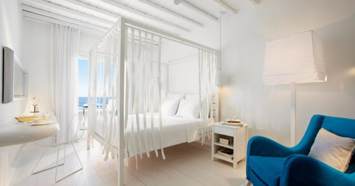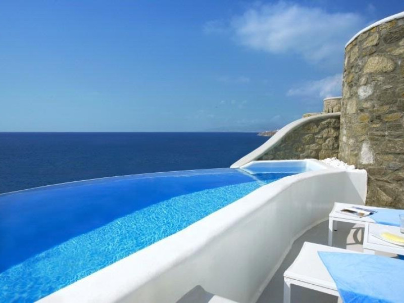 Descriere: Construit in stil amfiteatru, de-a lungul unei zone stancoase, hotelul Cavo Tagoo ofera lux si eleganta intr-o atmosfera discreta. Localizare: in zona Tagoo la aproximativ 500 metri de centrul orasului Mykonos, la 3 km de aeroport. Facilitati hotel: hotelul Cavo Tagoo oferta oaspetilor sai piscina exterioara cu apa sarata cu vedere panoramica spre marea Egee, piscina interioara incalzita, bar, restaurant principal, salon de mic dejun, restaurant a la carte, bar la piscina, magazine, centru Spa cu sala de fitness si centru Wellness, lift, receptie deschisa 24 de ore, baby sitting (la cerere), doctor (la cerere), spalatorie, ziare livrate in camera (la cerere), acces internet wireless in spatii publice si parcare exterioara. Centru Spa: tratamente de intinerire cu caviar, sare marina, extracte minerale si pulbere de aur, masaj corporal, thalassoterapie, tratamente faciale si corporale, cromatoterapie, sauna, hamam, vestiar si piscina interioara incalzita. Sala de fitness si centru Wellness: biciclete, greutati si echipament pentru antrenamente. Dotari camere: hotelul Cavo Tagoo ofera cazare in 80 de camere, suite si vile, cu decor special, minimalist, intr-o paleta de culori unice (bleu, roz sau fuchsia). Toate camerele au in dotare: aer conditionat, baie cu cada - jacuzzi & dus separat, halate si papuci, cosmetice de baie Korres, uscator de par, TV LCD, TV satelit, DVD/CD player, oglinda, acces internet (contra cost), minibar, radio, telefon international, seif electronic si terasa/balcon. Plaja: la distanta de aproximativ 200 metri de hotel este o mica plaja cu nisip, neamenajata. Web site: www.cavotagoo.gr